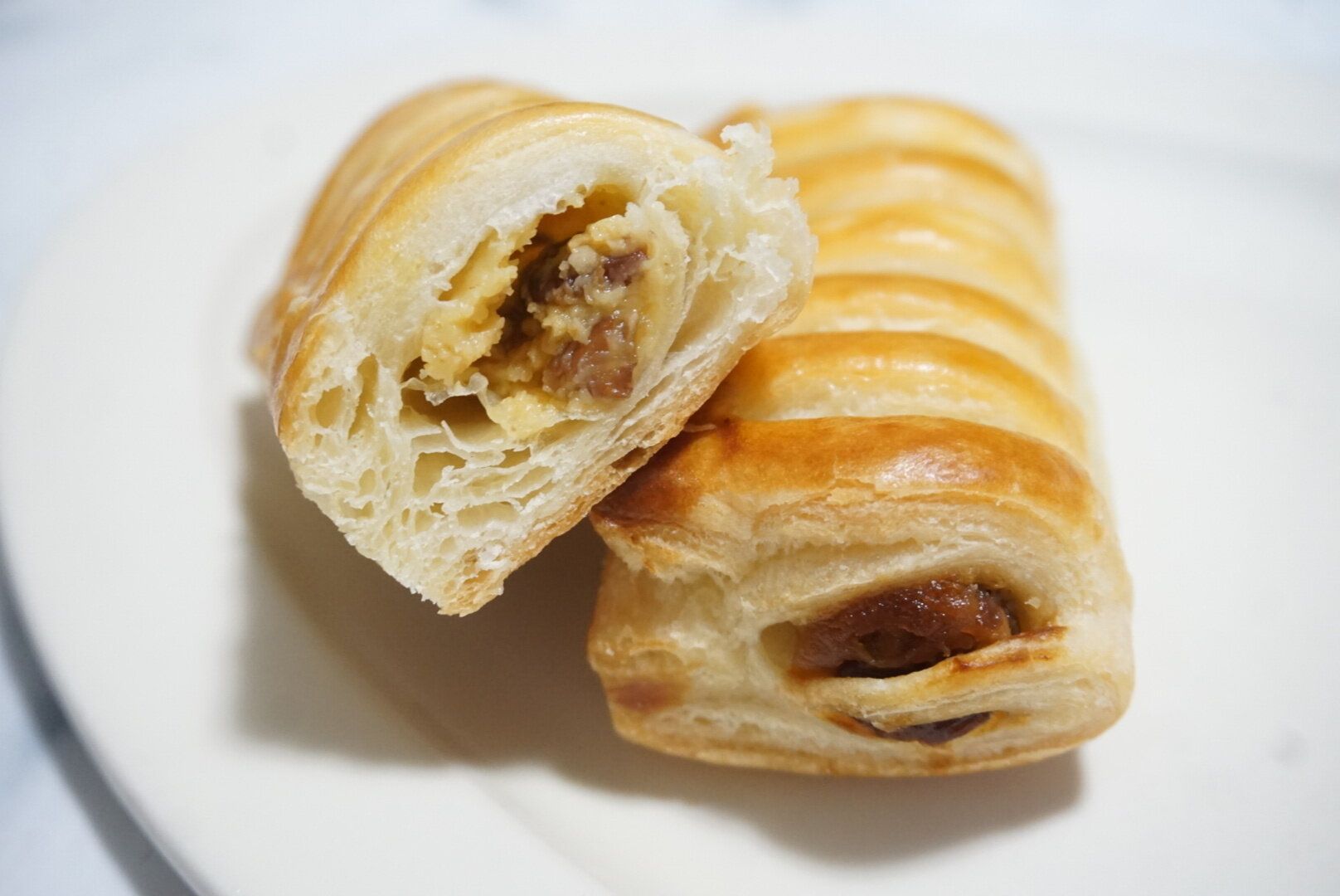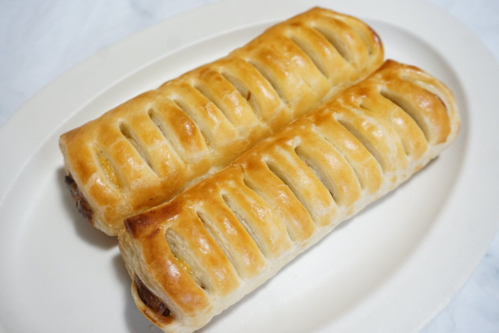 なめらかなカスタード味のクリームと甘みのあるレーズンを包んだ2本入りのパイです。