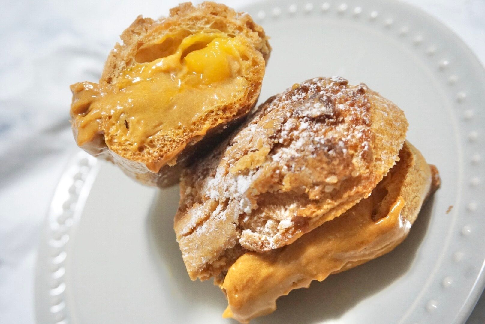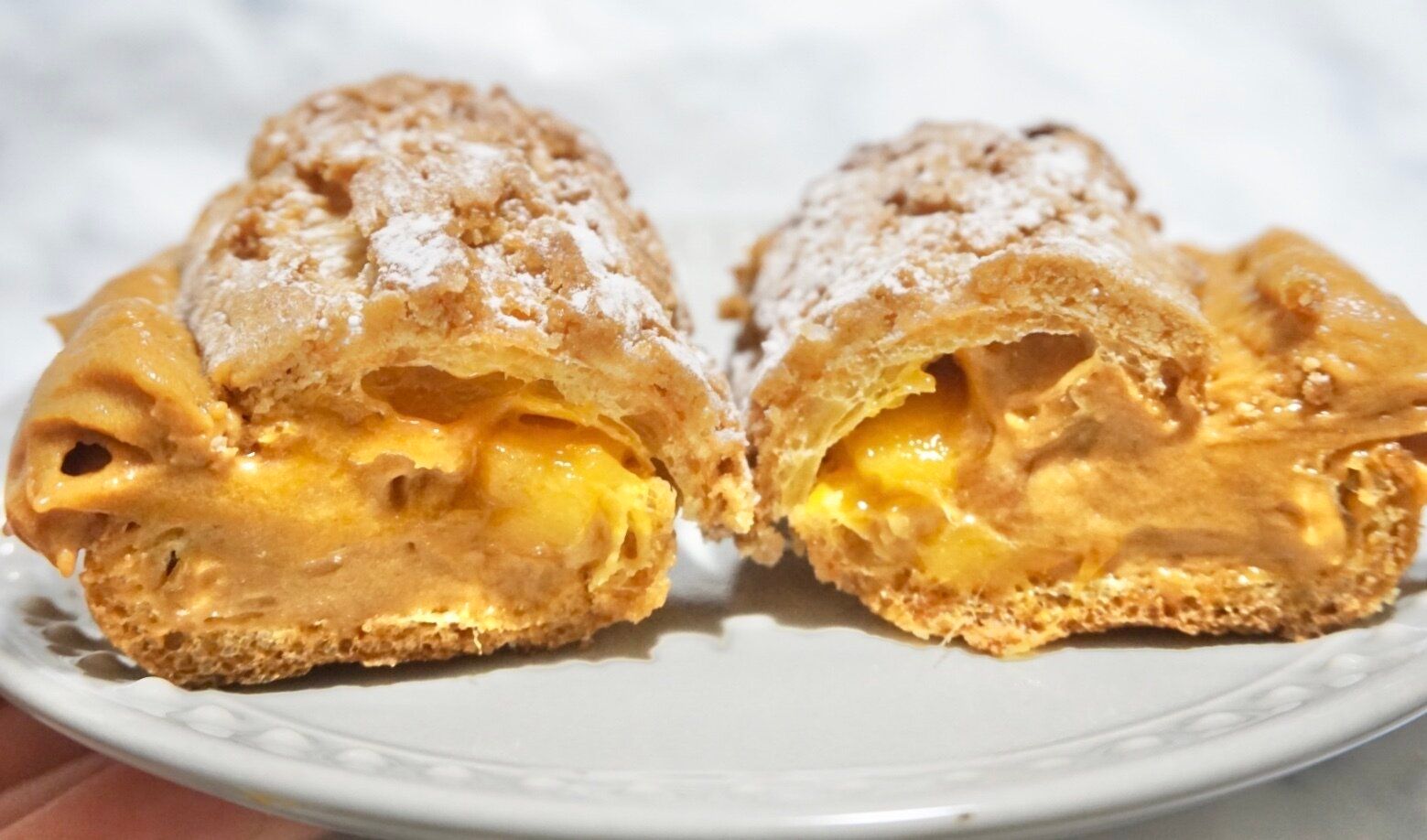 キャラメルクリームの主張が強く主役級なんですが、マンゴーの酸味が引き立てていてバランスが取れています。シュー生地は少しパサつきがあるのは否めませんが、思ったよりサクッとしていてコンビニスイーツなら文句なしのクオリティです。