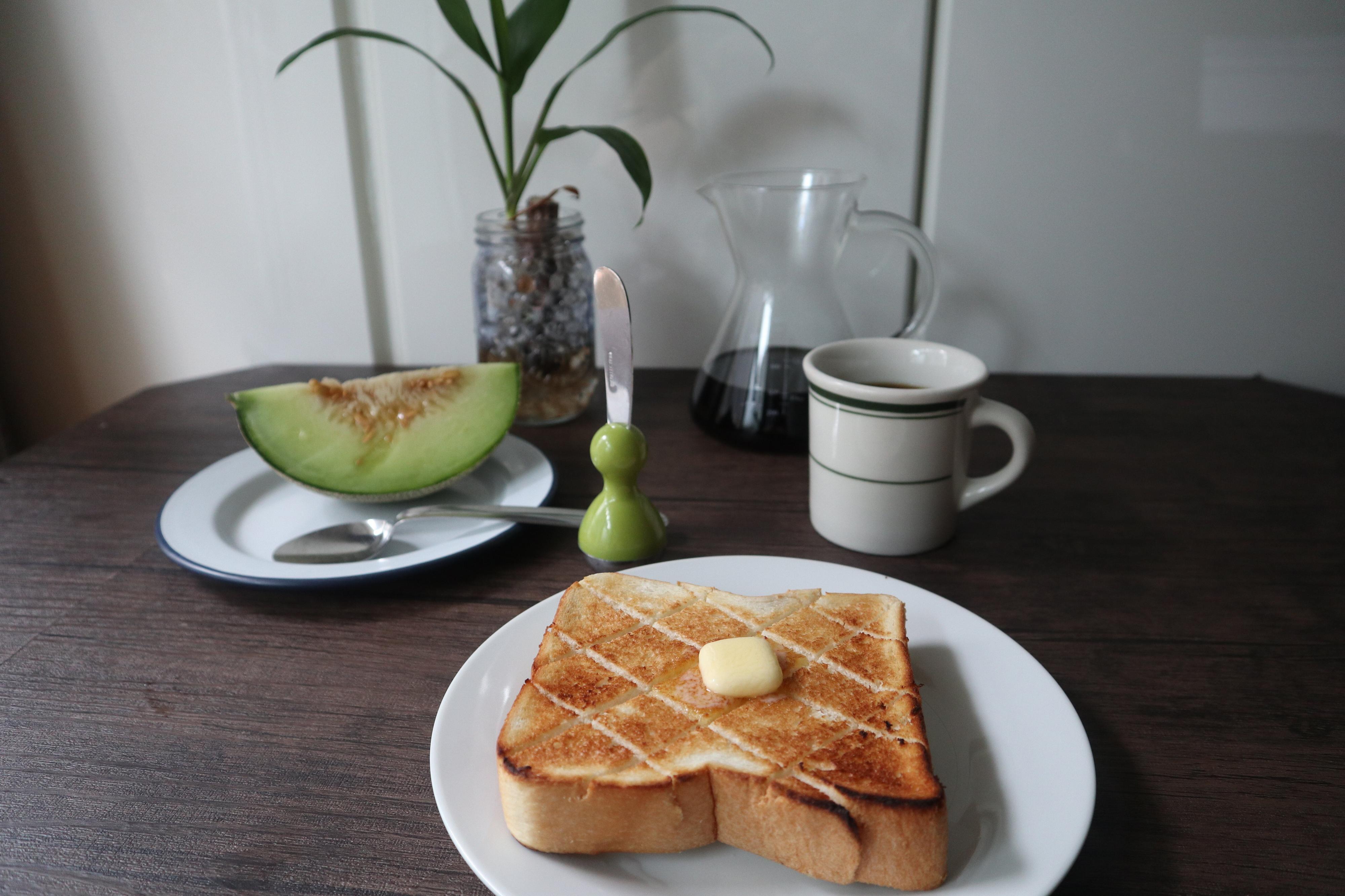 金の食パンに粒あんをのせてトースト。バターをのせて余熱で少し溶かす。甘くてしょっぱいのループ。カロリーは高いけど、ムシムシ。至福の味わいが待っています。