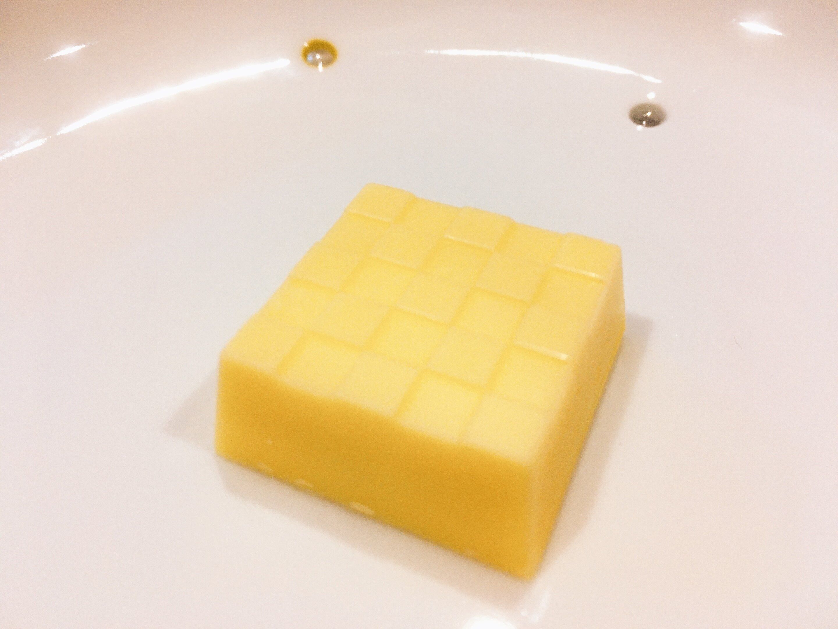 アイスじゃないのに何となくひんやりとした口当たりで不思議。これは調べてみると「エリスリトール」という甘味料が使われているからとのこと。こちらの甘味料は解けるときに熱を吸収する作用が高いので、口に入れた時にひんやりと感じられるそう。