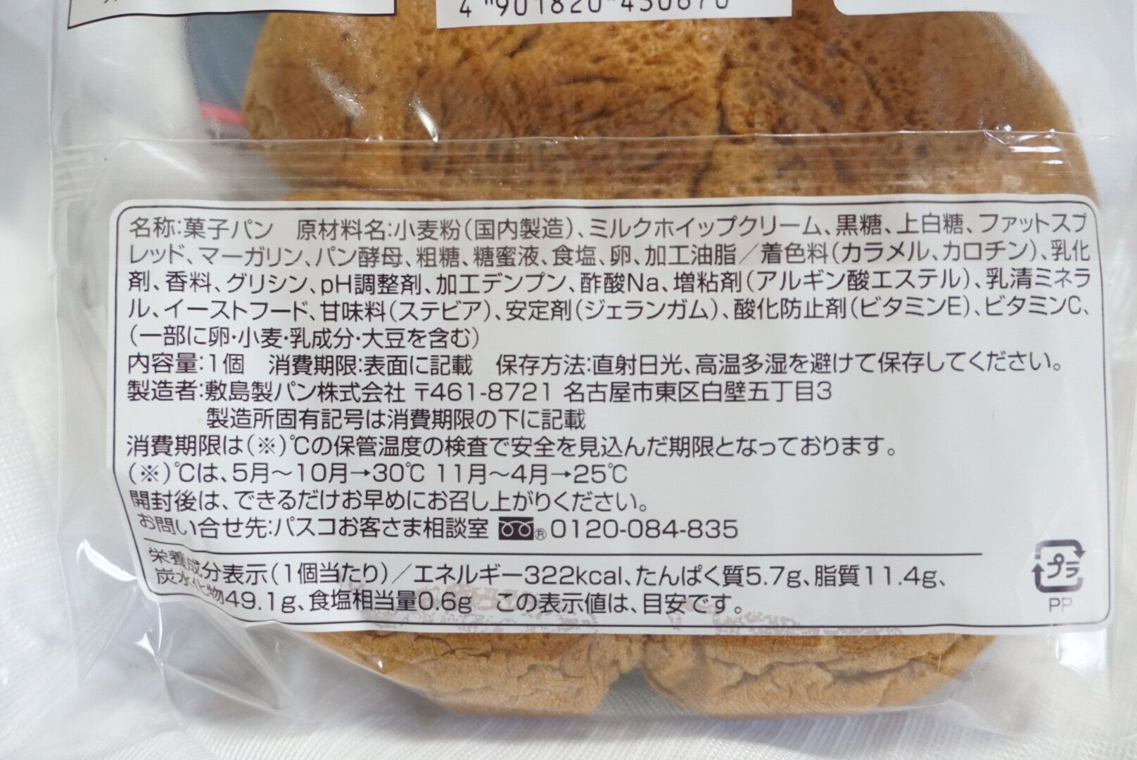 ふんわりとした黒糖味のパンに、ミルクホイップクリームが挟んであります。