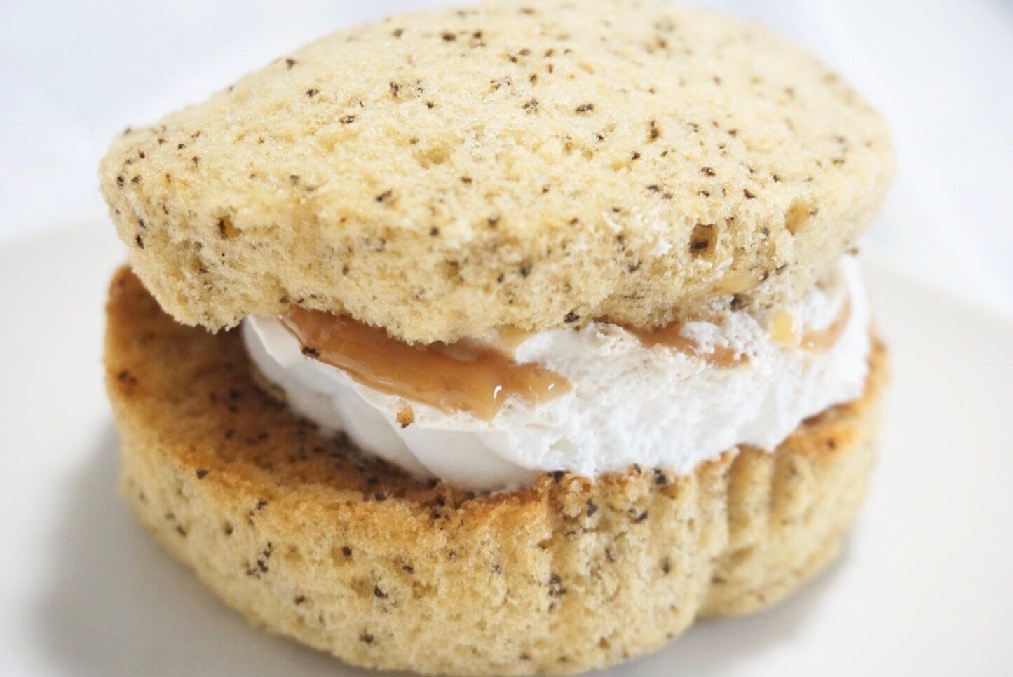 アールグレイの香り高いふわふわっとしたシフォン生地に、紅茶風味のカスタードとキャラメルソースを挟みました。北海道産生クリームをブレンドした、濃厚ですっきりとした味わいのホイップが特徴になっています。