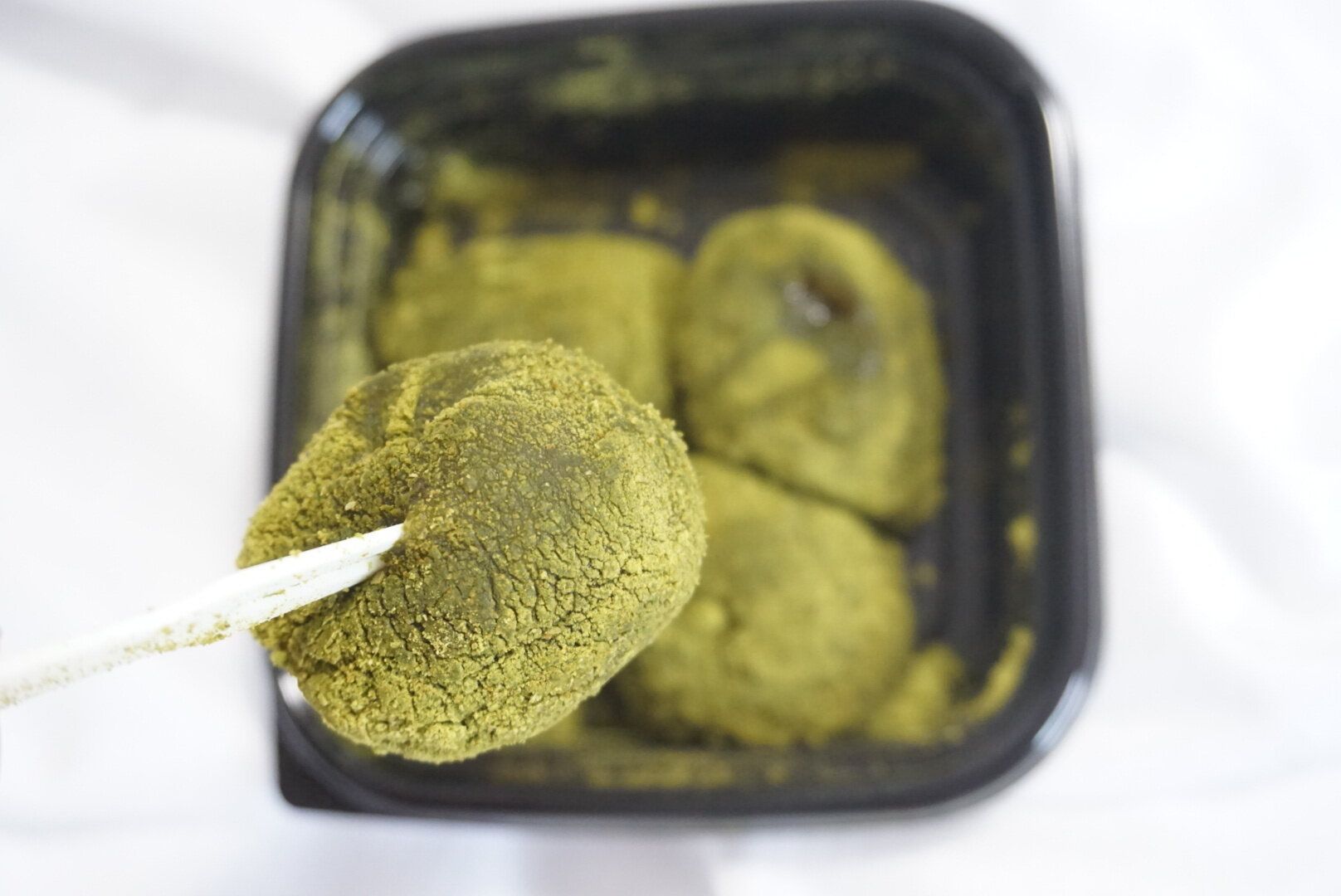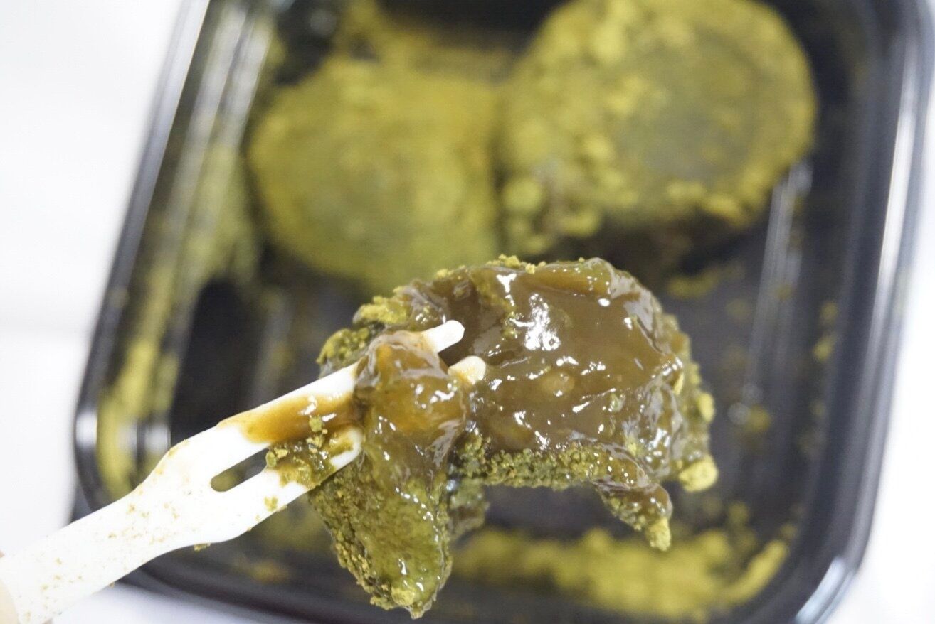 噛むと中から抹茶蜜がとろとろ〜と出てきます