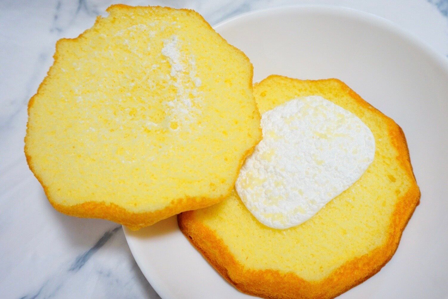 食べるとふわふわだけどもちもちしていて、例えるならスポンジケーキとカステラの中間のような感じです。
