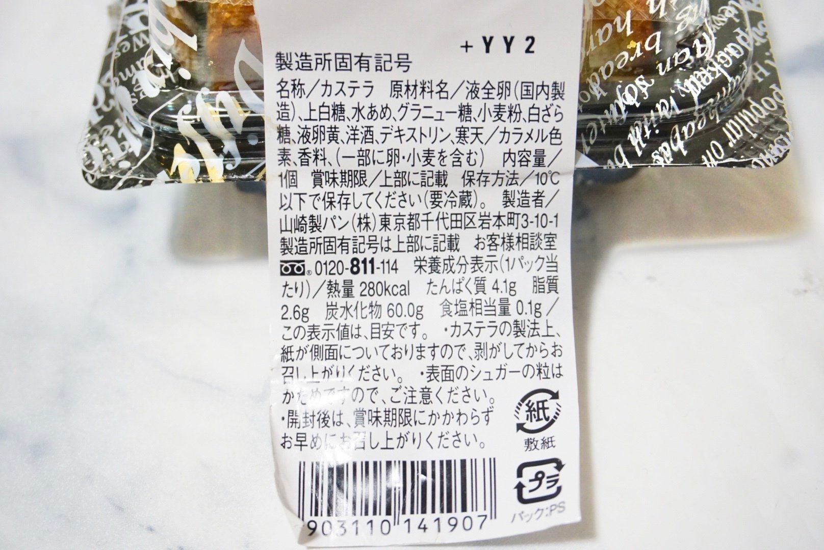 側面にはカステラの紙がついてるのでいっしょに食べないように注意。