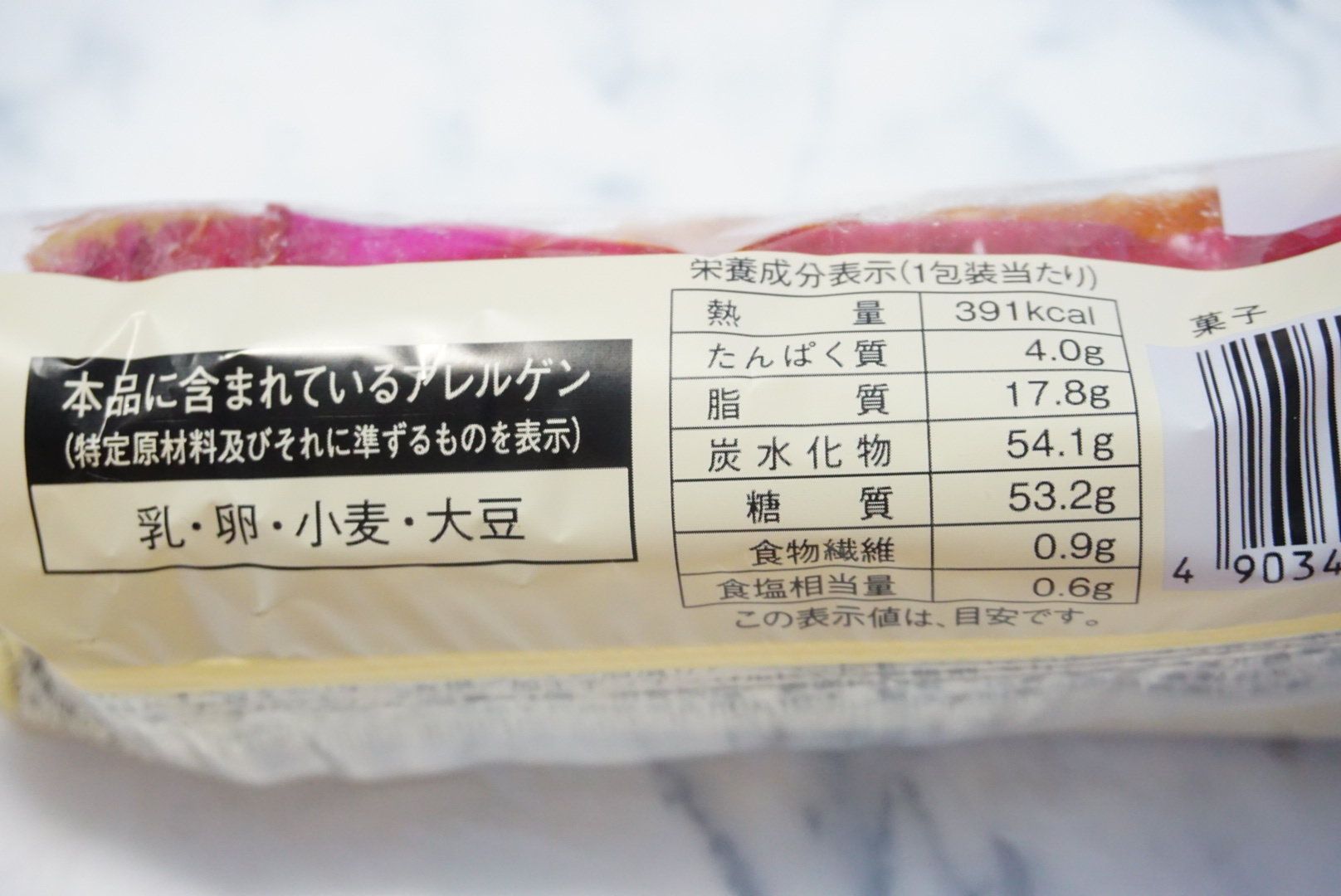 1個あたり391kcalと、菓子パンではなかなかの高カロリーです。