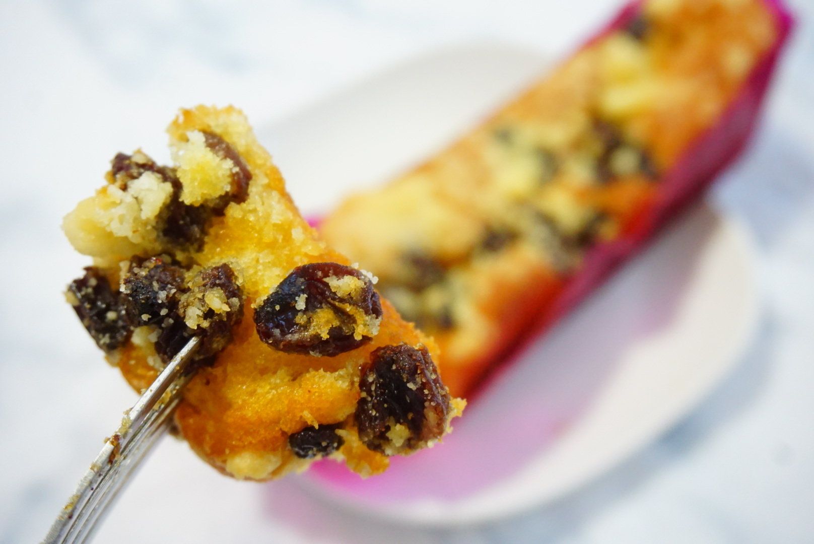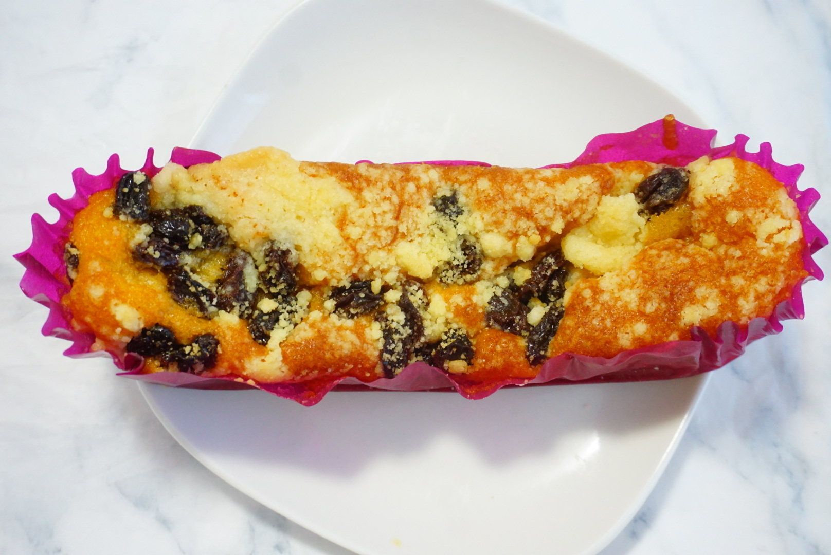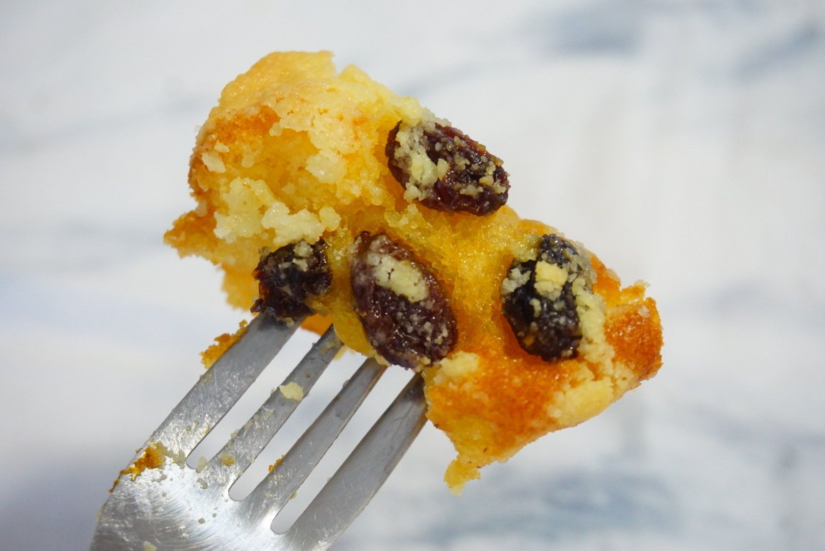 生地はしっとりもっちりとしたバタースコッチテイストで、香りのいいレーズンの味が広がります。