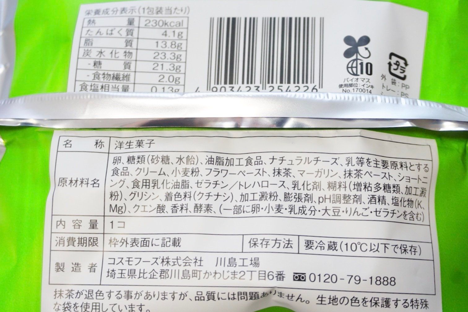 1個あたり230kcalと、ロールケーキなのに思ったよりカロリーが低くてうれしくなりました。