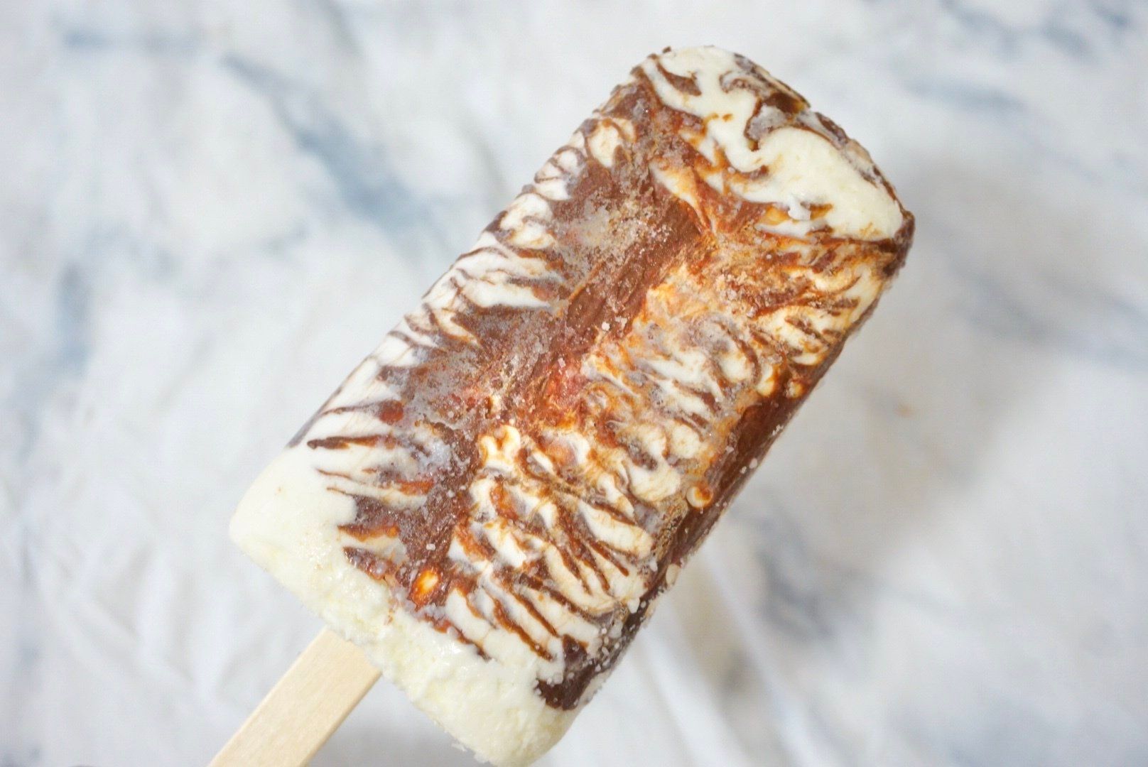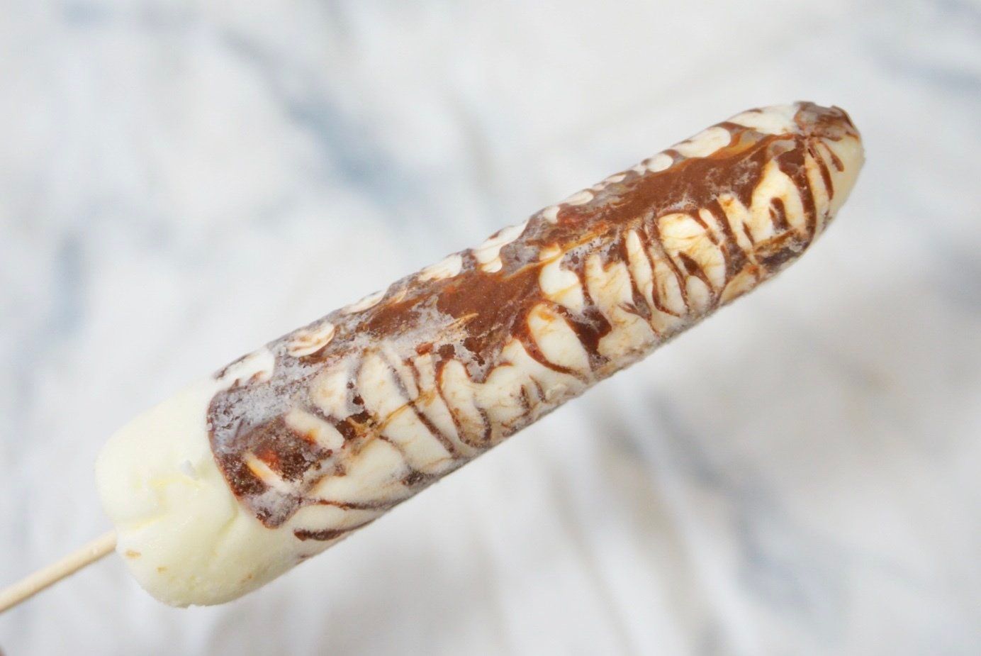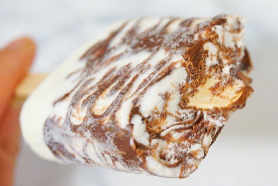 パリパリッとした食感のチョコレートと、バニラアイスを組み合わせた、しまうま模様が特徴のアイスバーです。