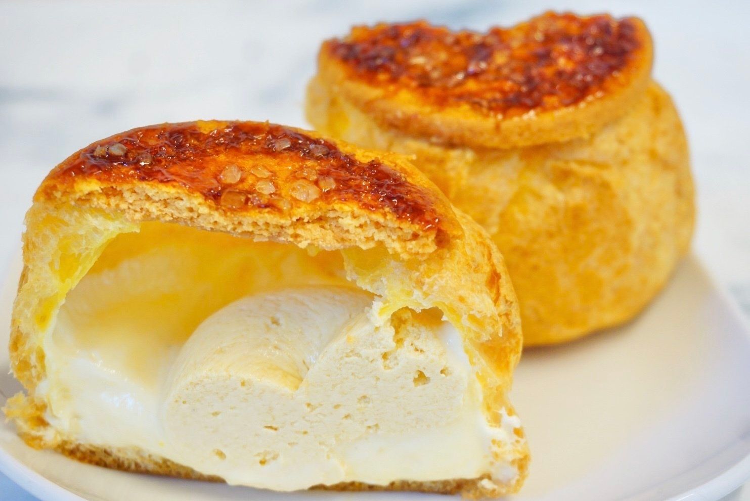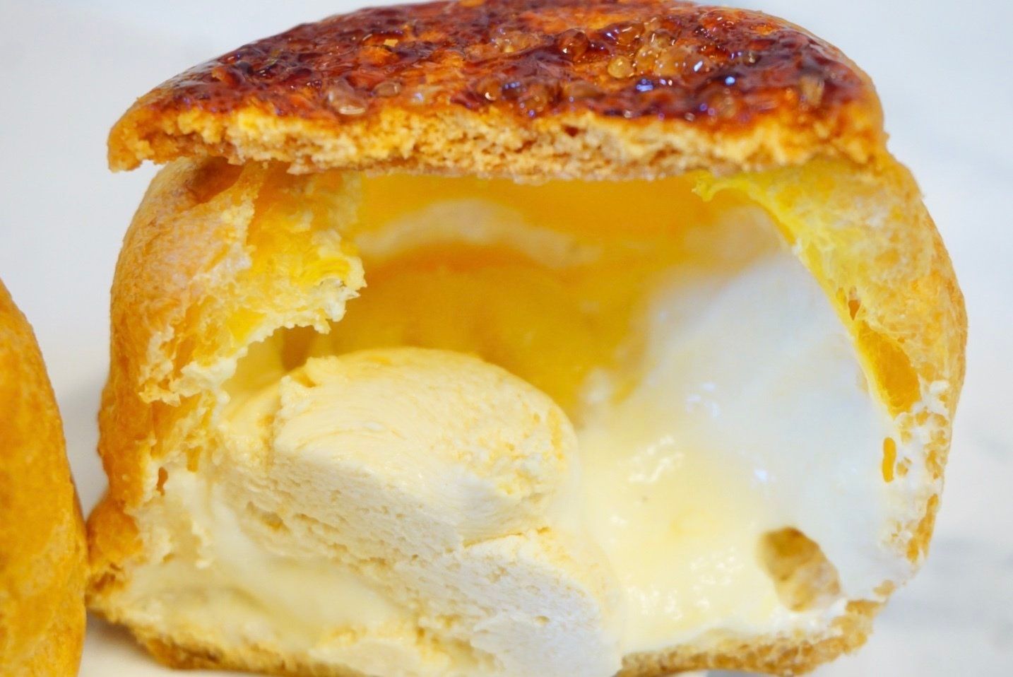 シュークリームの上部分がないのってほとんど見たことがないので、新鮮です。