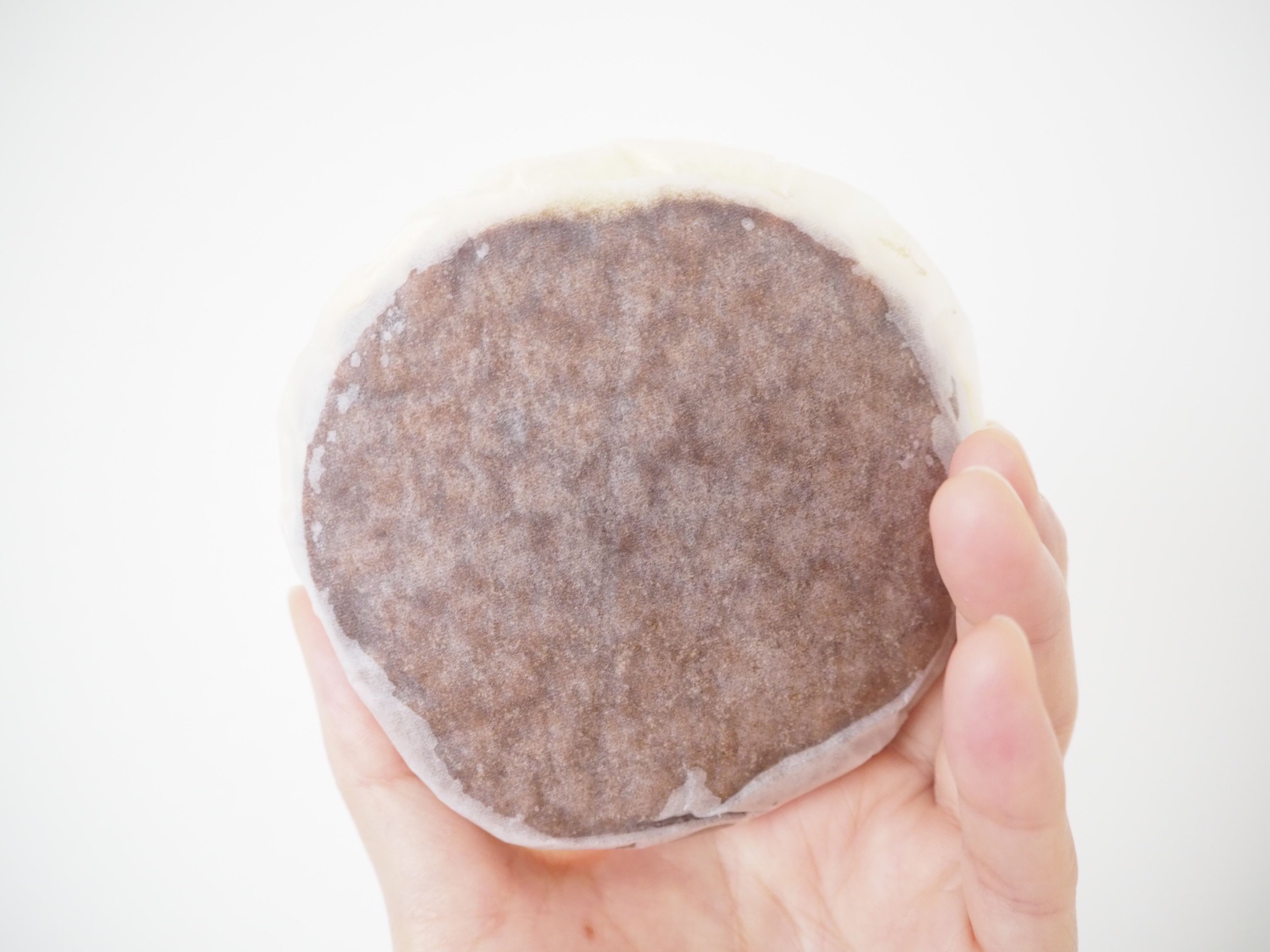 一般的な蒸しケーキと同様、グラシン紙に収まっています。底が茶色になっていますが、一体どういうことでしょう?