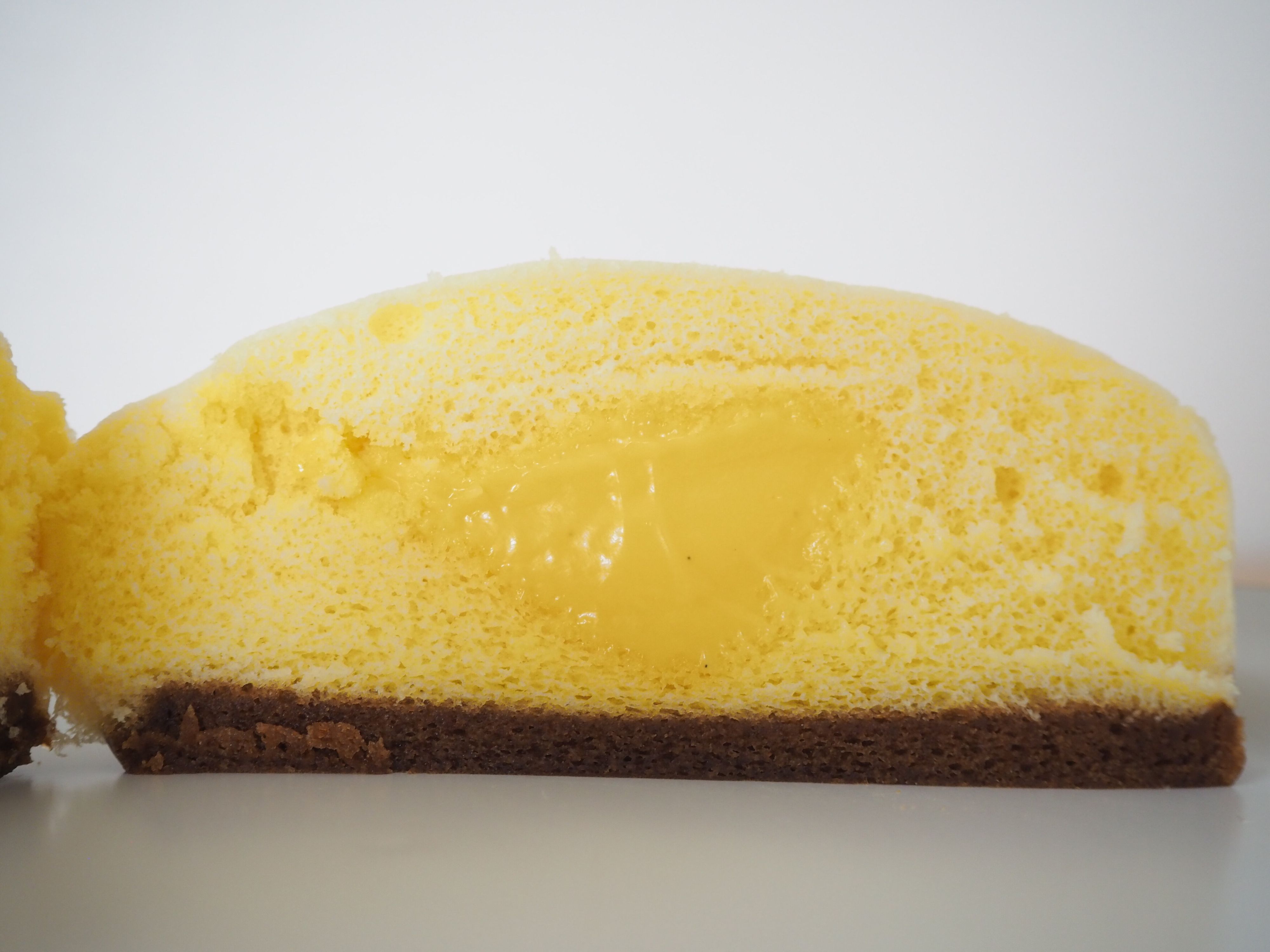 底にある茶色い生地は蒸しケーキよりも柔らかめ。ほんのりと感じるカラメル味でプリンらしさを強調しています。