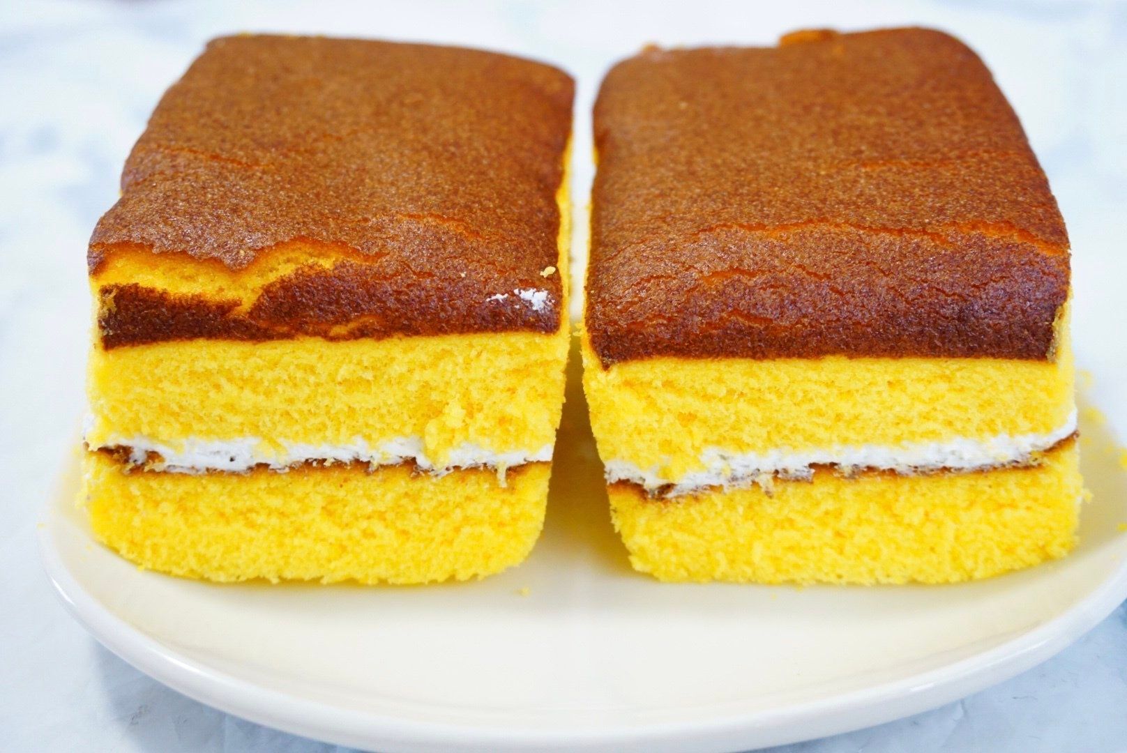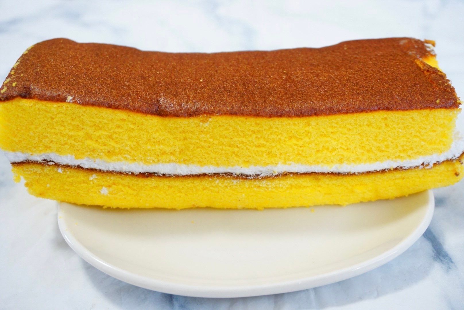 カステラ風のボリュームがあり、もっちりとした生地に、口どけのよいホイップクリームをサンドしました。カステラのように見た目も四角い形状に仕上げました。