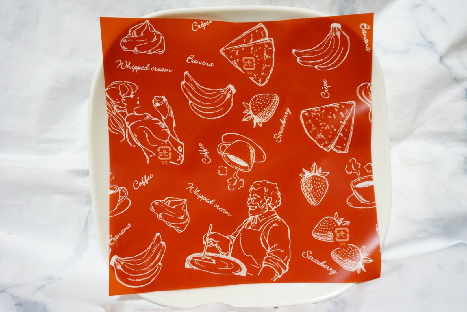 持ち手の紙にいちごやバナナ、カップの絵などがイラストされていてかわいいです。