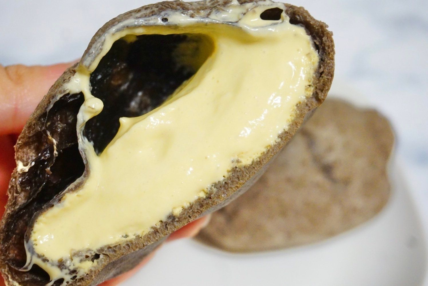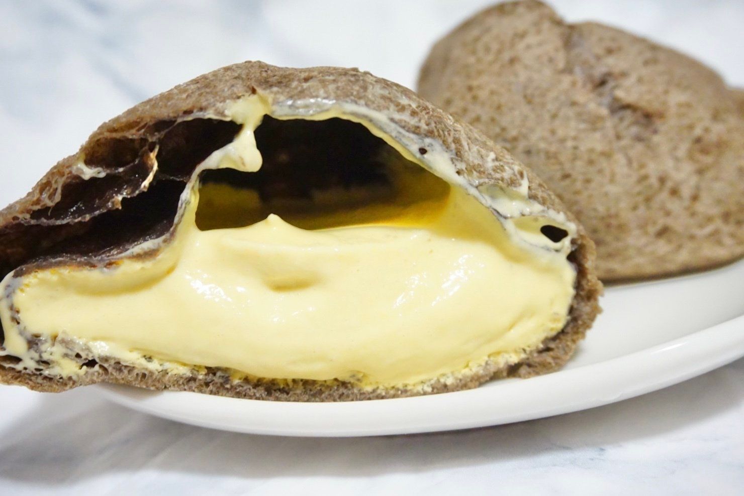 もちっとした食感のシュー生地にブラックココアが練り込んであり、マスカルポーネとクリームチーズを使ったティラミスに仕上がっています。