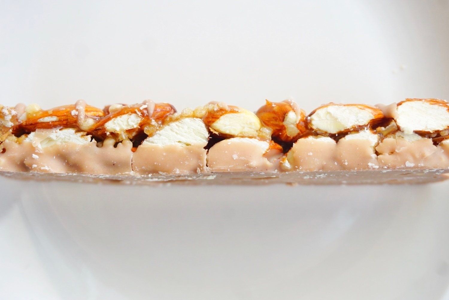 ナッツがゴロゴロ密集していて、下部分はチョコレートでコーティングされています。