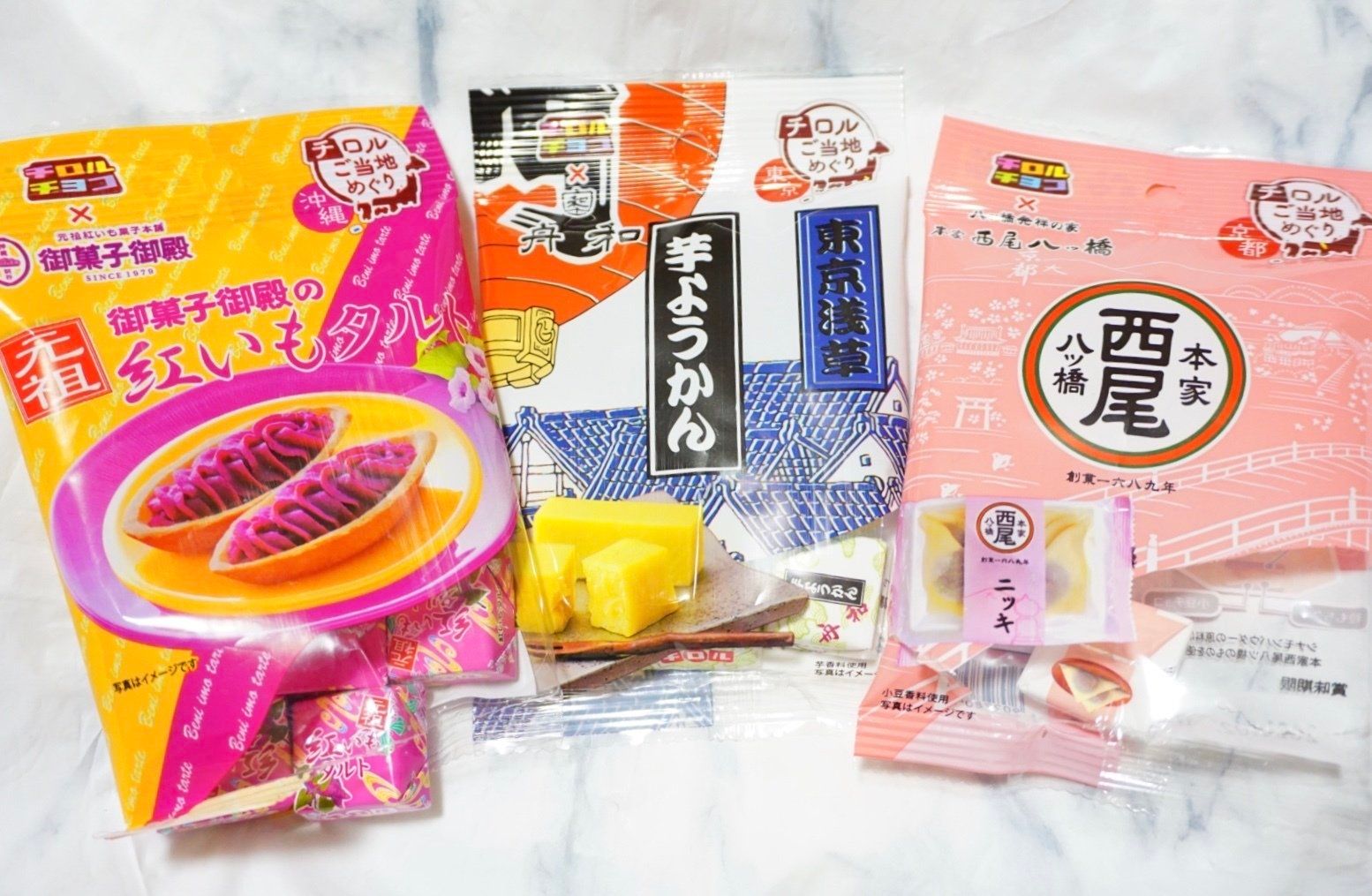 今回のラインナップは北海道の「よいとまけ」、京都の「八ツ橋」、東京の「芋ようかん」、沖縄「紅芋タルト」の4つです。