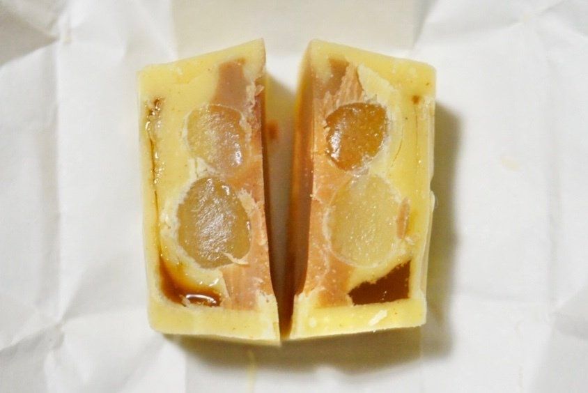 東京の舟和の芋ようかん。さつま芋と砂糖と少量の食塩で作り上げた、素材の風味を生かした和菓子をチロルチョコで再現。