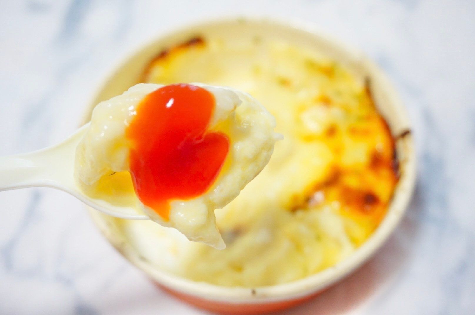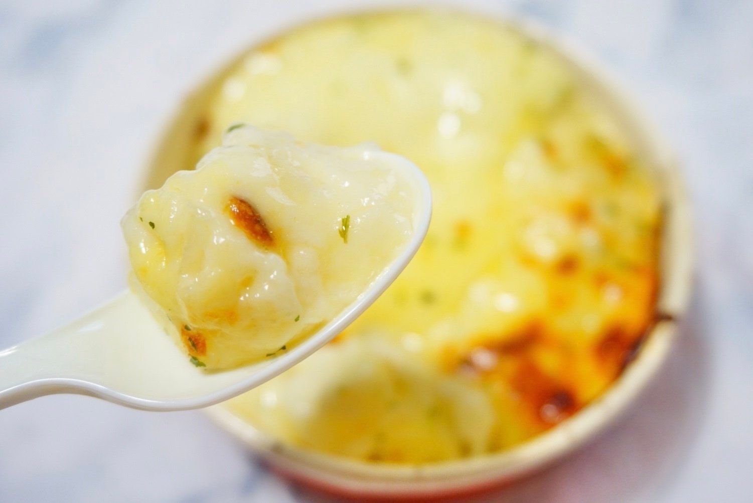SNSでは、スプーンを入れるとチーズが伸びる伸びる!と話題だったんですが…