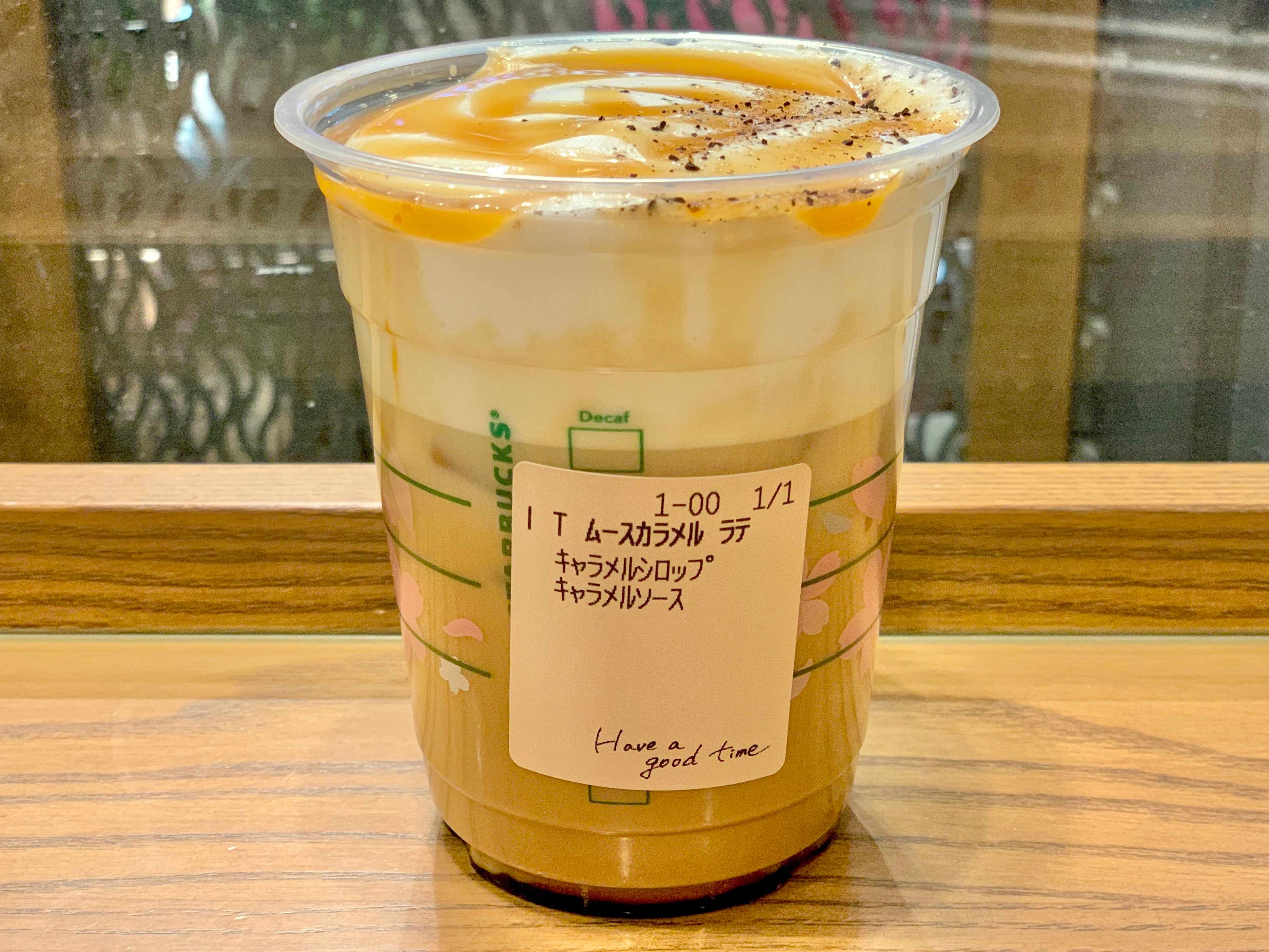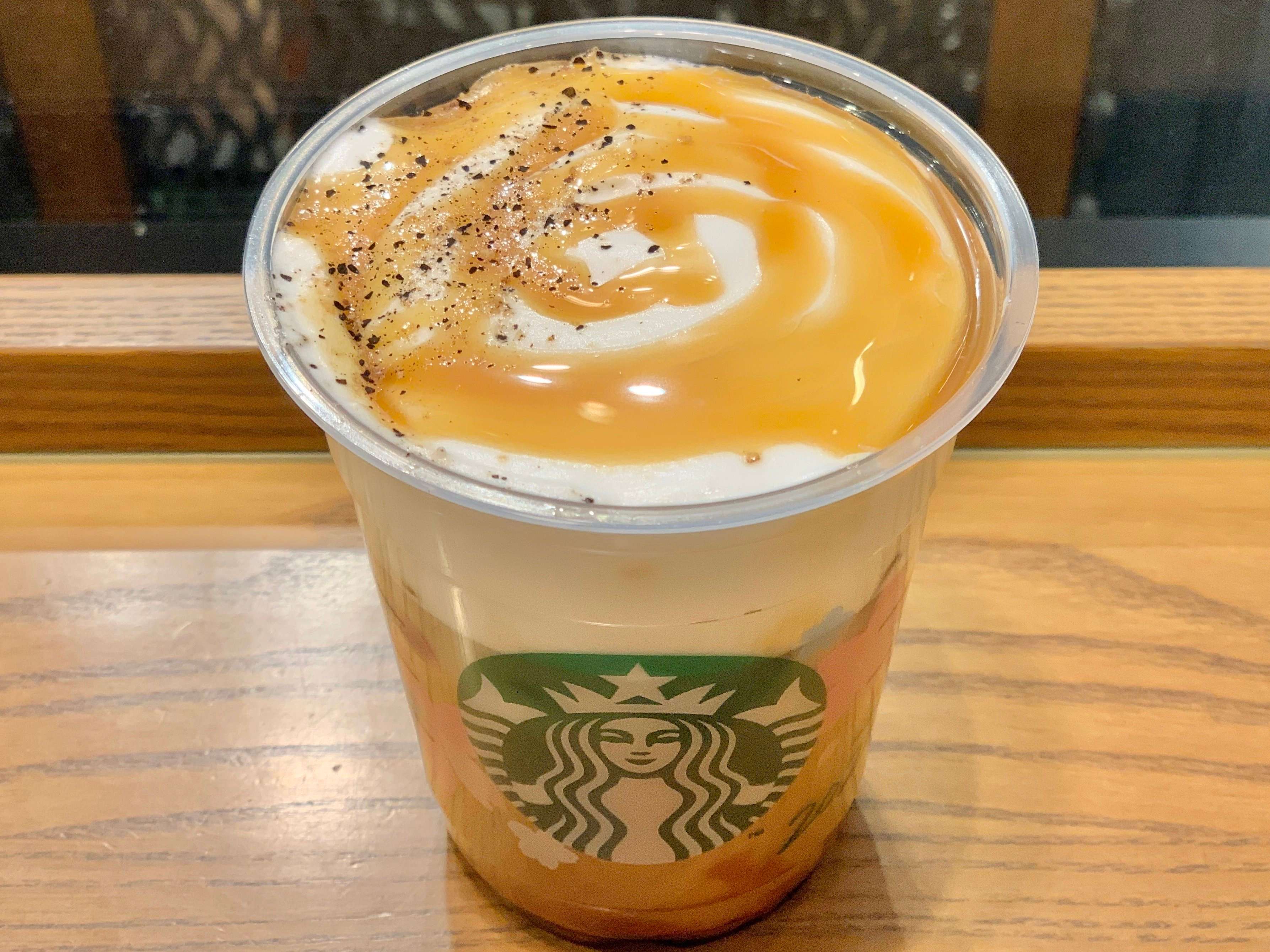 キャラメルシロップを追加したのでキャラメルづくしのドリンクに。