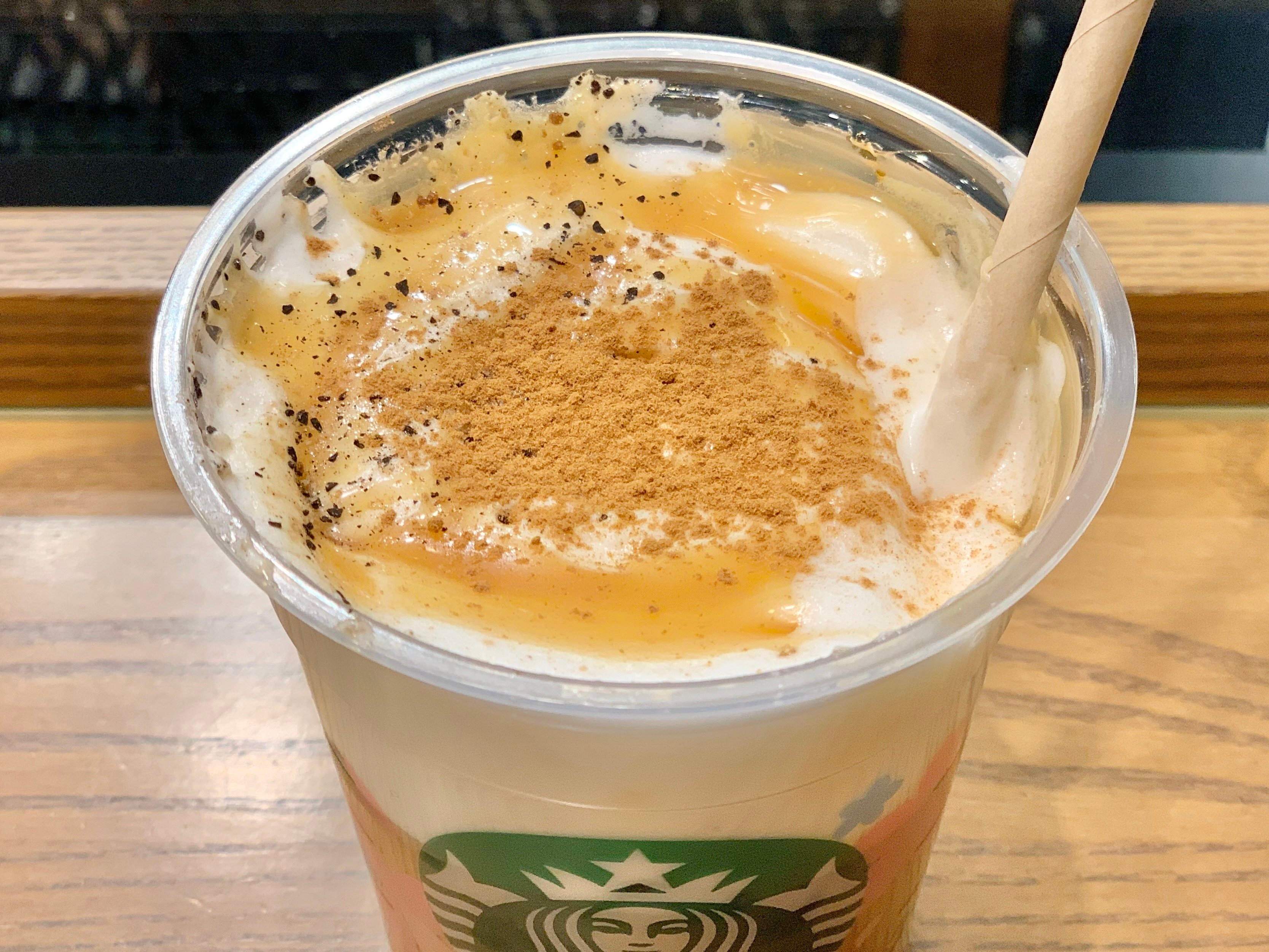 エスプレッソショットが2杯分入ってるので、コーヒー感はなくならずにキャラメル味が楽しめる一杯になりました。