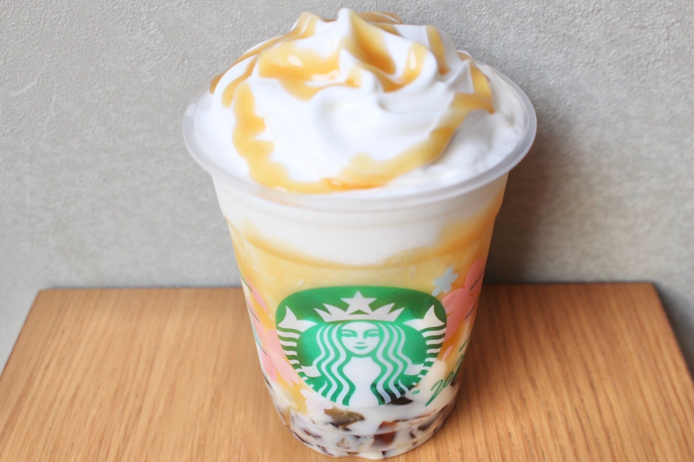 スターバックスオリジナルのコーヒージェリーと、バタースコッチフレーバーソースを混ぜ込んだクリームベースのフラペチーノ®に、ホイップクリームとバタースコッチフレーバーソースをトッピングしました。
