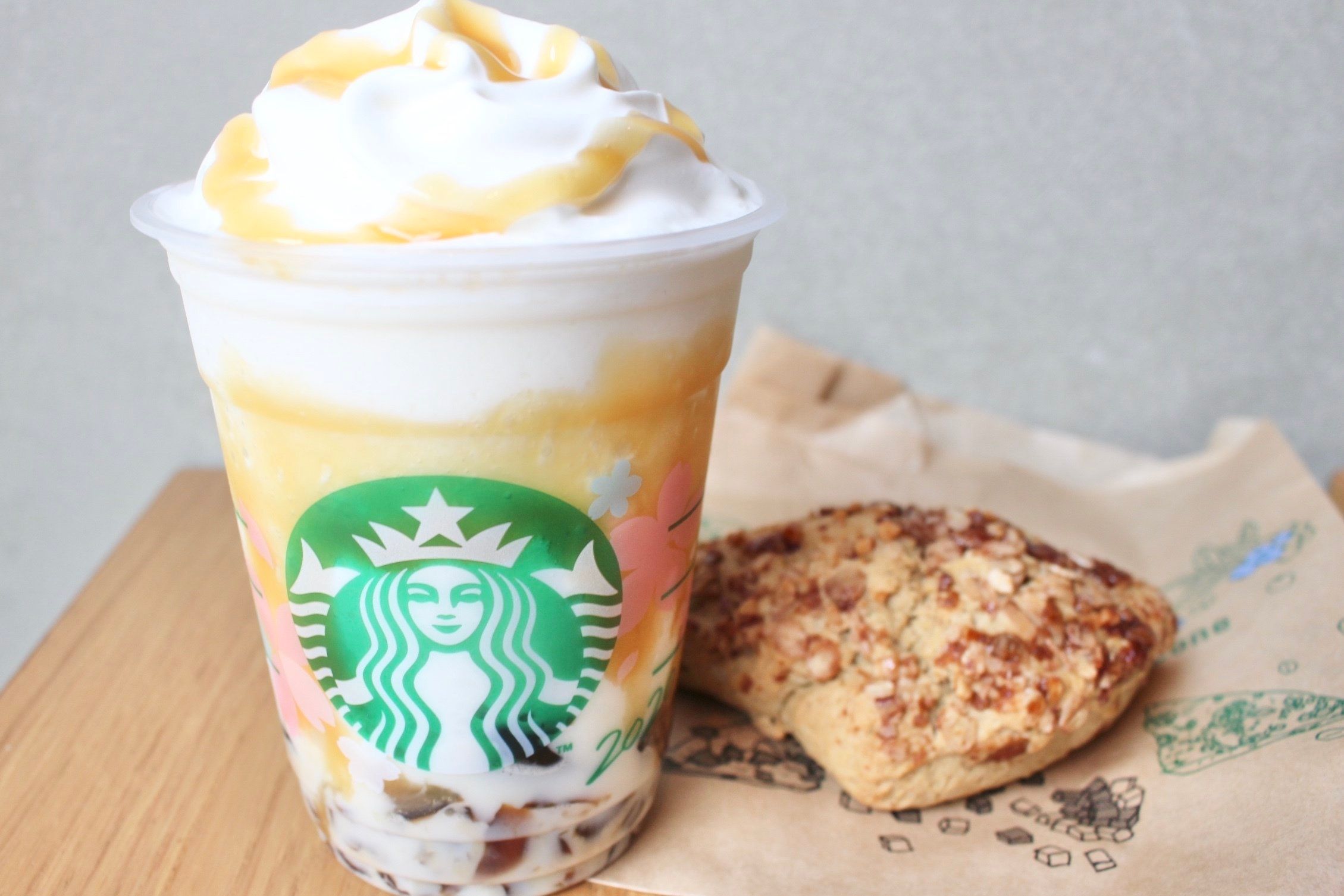 スタバの新作バタースコッチコーヒージェリーフラペチーノとメルティチョコナッツスコーンを紹介しました。