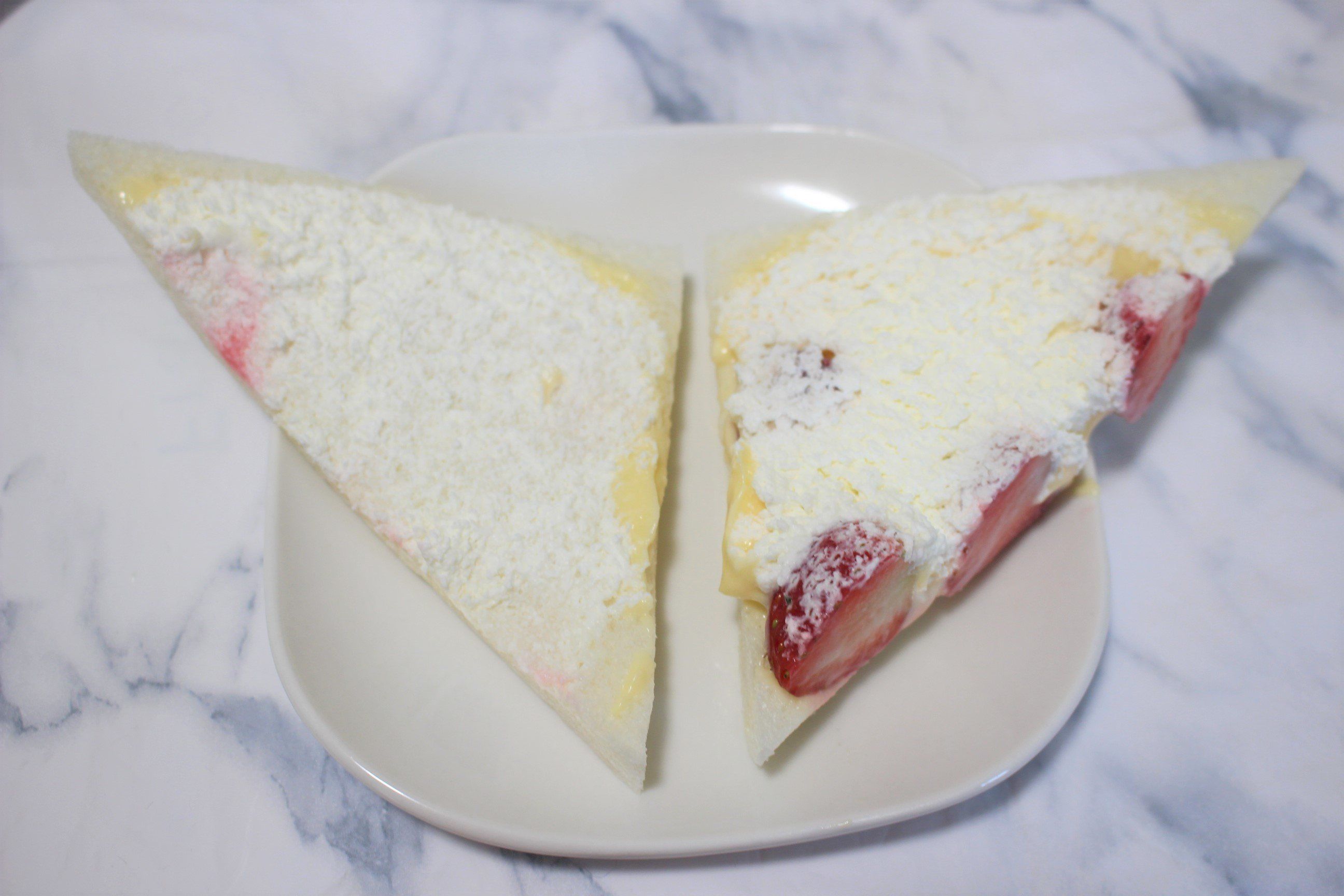 苺のフルーツサンドは開いてみると分かりますが大体3.5粒のいちごが入っています。