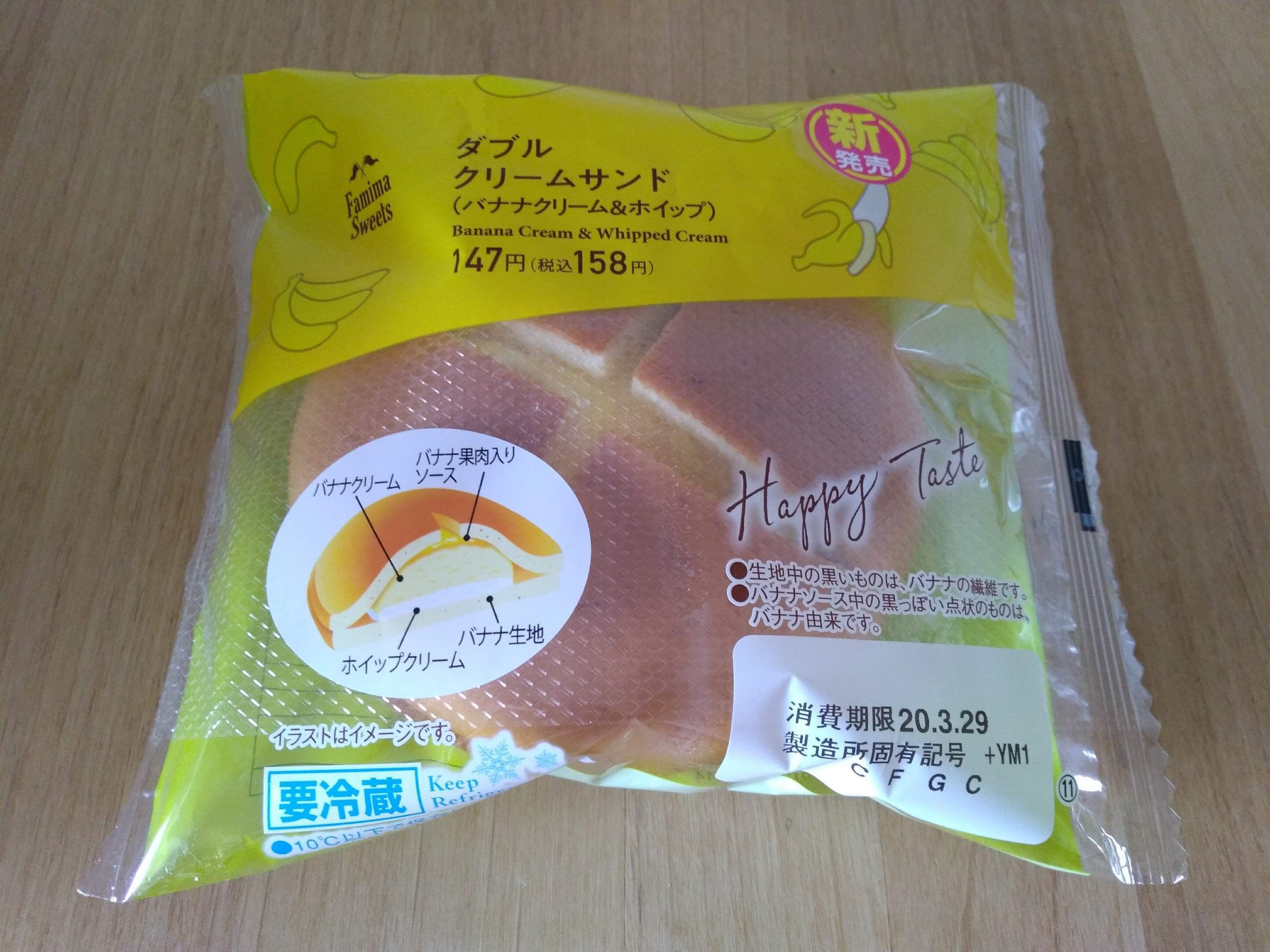 「ダブルクリームサンド(バナナクリーム&ホイップ)」は147円で、全国のファミリーマートで販売中。