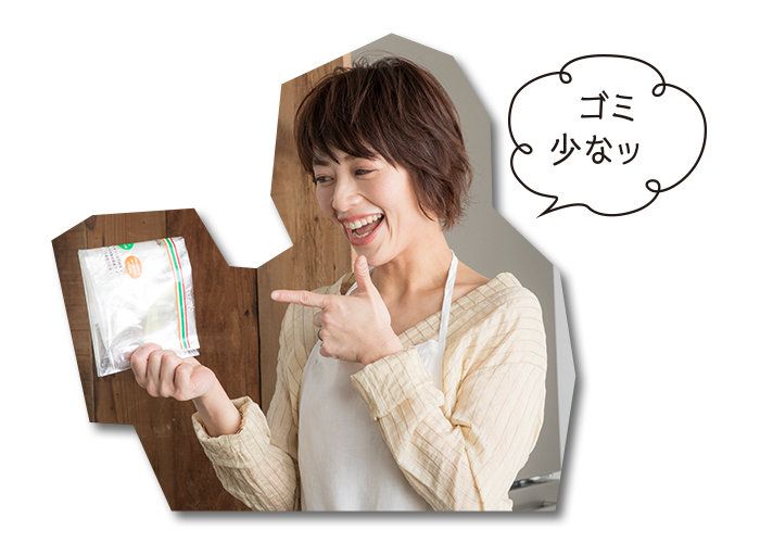 トレーや箱が使われていないので、ゴミが超コンパクト。調理に使う道具も最小限なので、洗い物が少なく、後片づけも圧倒的に時短に。買い物、調理、片づけまでママの負担が軽減!