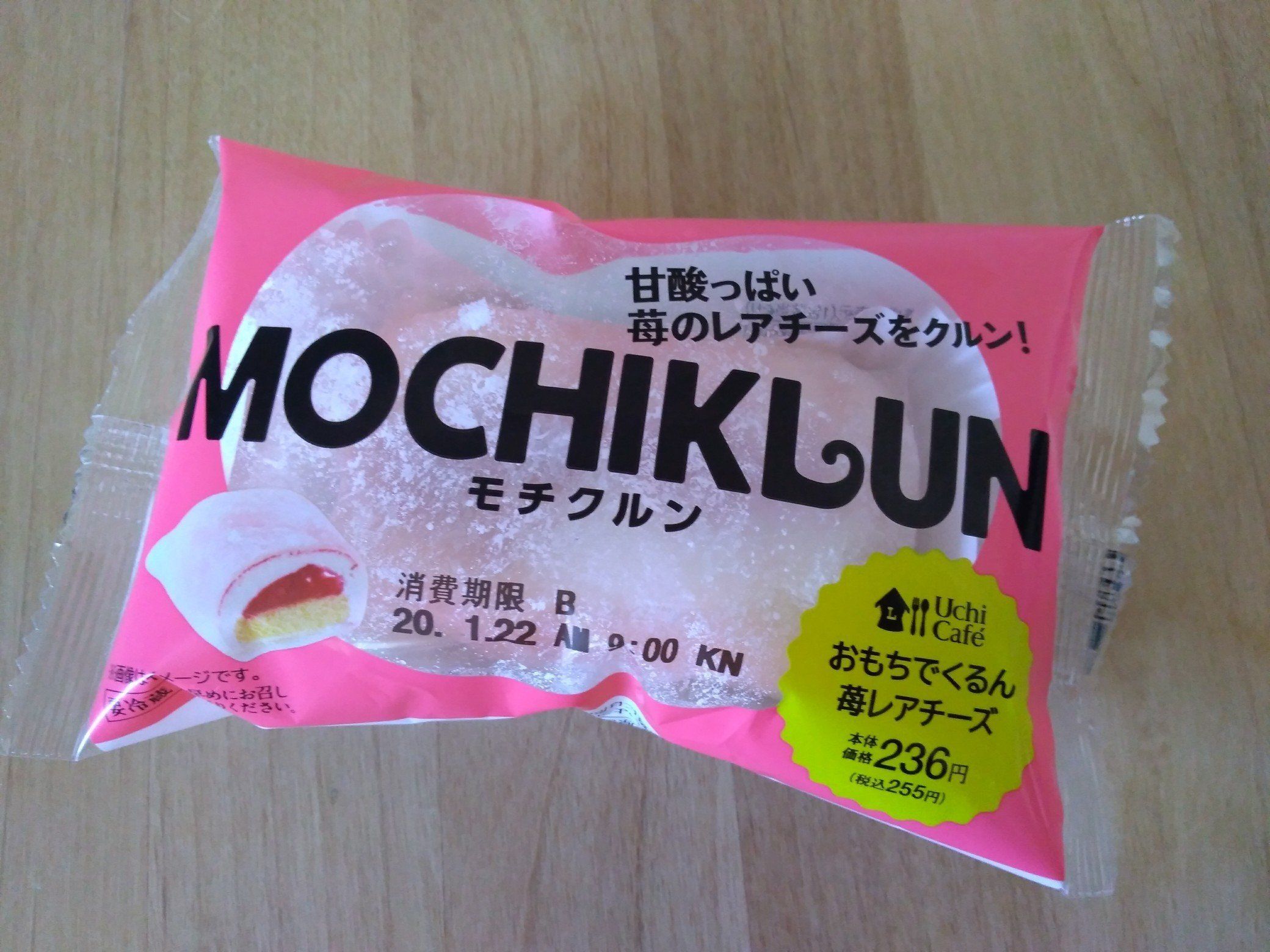 もちもちの求肥でふわふわスイーツを包んだ、新感覚の和洋折衷スイーツ、その名も「モチクルン」。いったいどんなスイーツなのか?今回は“甘酸っぱい苺のレアチーズをクルン!”とした「モチクルン –おもちでくるん苺レアチーズ-」を食べてみます。