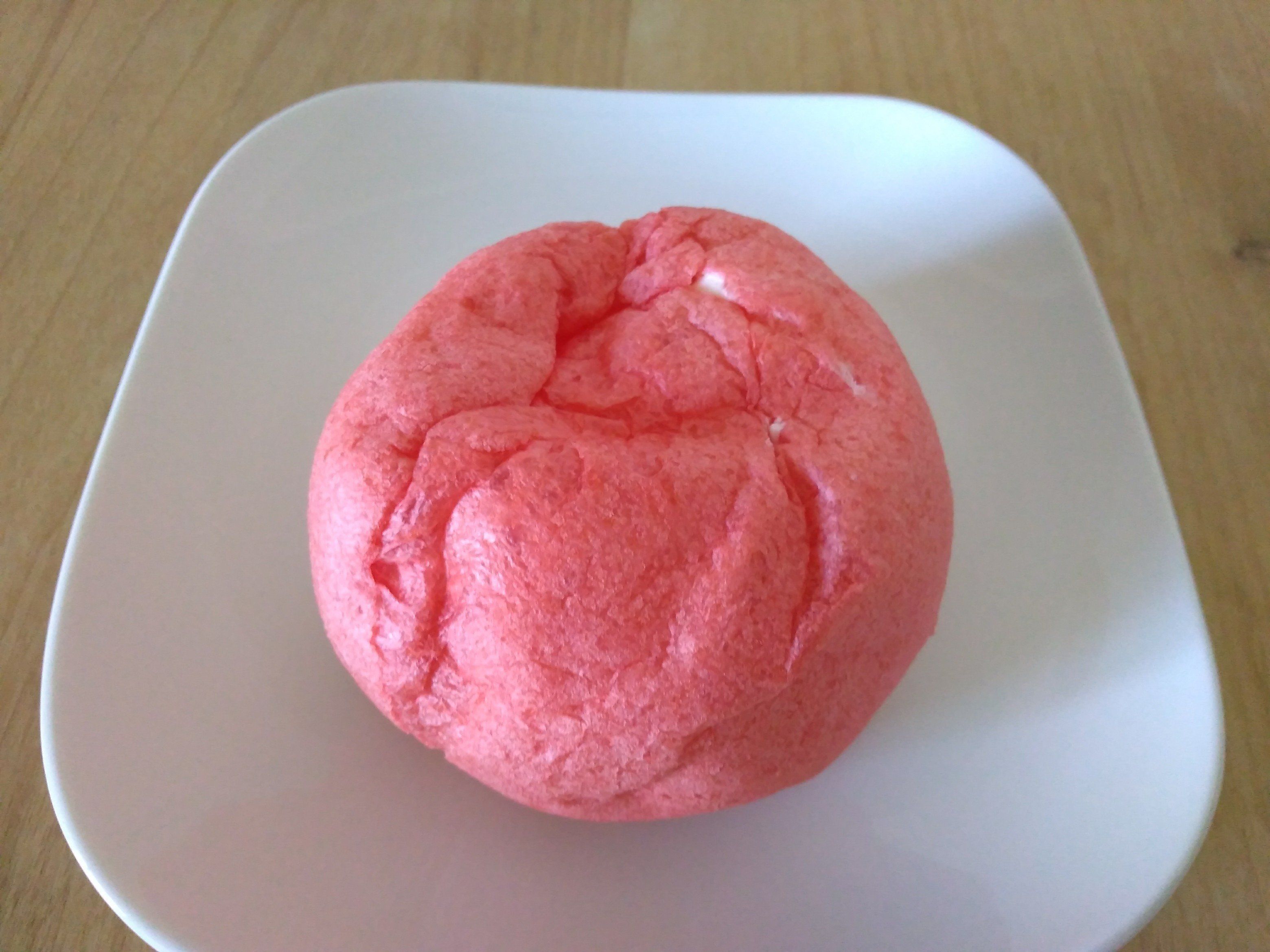 ピンク色のシュー生地は薄いのにもちっとした食感と存在感があり、いちごが練り込まれているので、シュー生地からもいちごの甘酸っぱい風味を感じることができました。