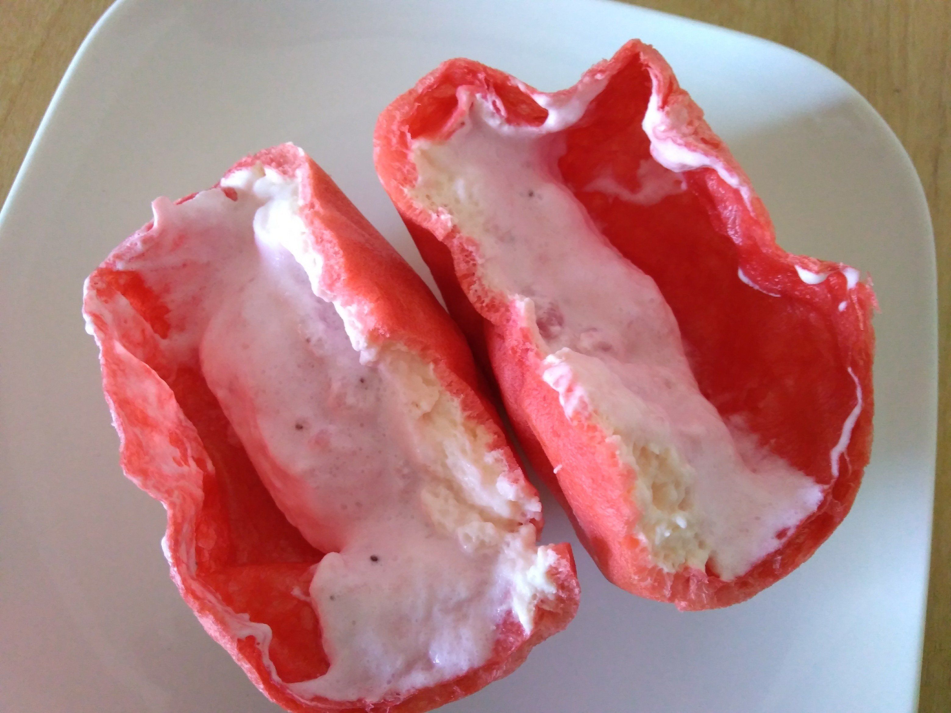 中には、「果肉入り苺ホイップ」と、「ミルクムース」が入っているようです。