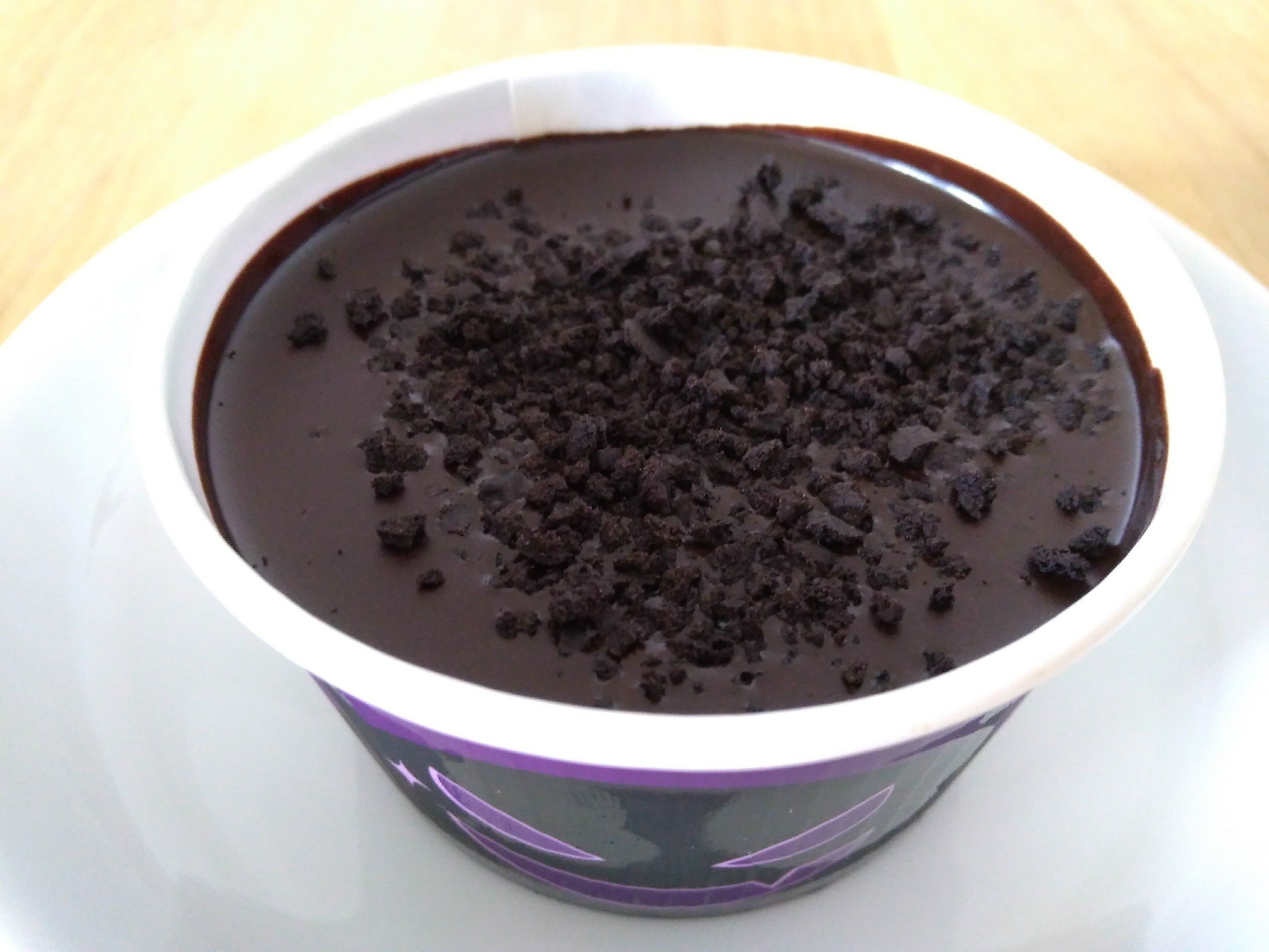 ツヤッツヤに黒光りする見るからに濃厚なチョコレート! 表面にはチョコクッキーがたっぷりトッピングされています。この時点ですでに悪魔の虜。
