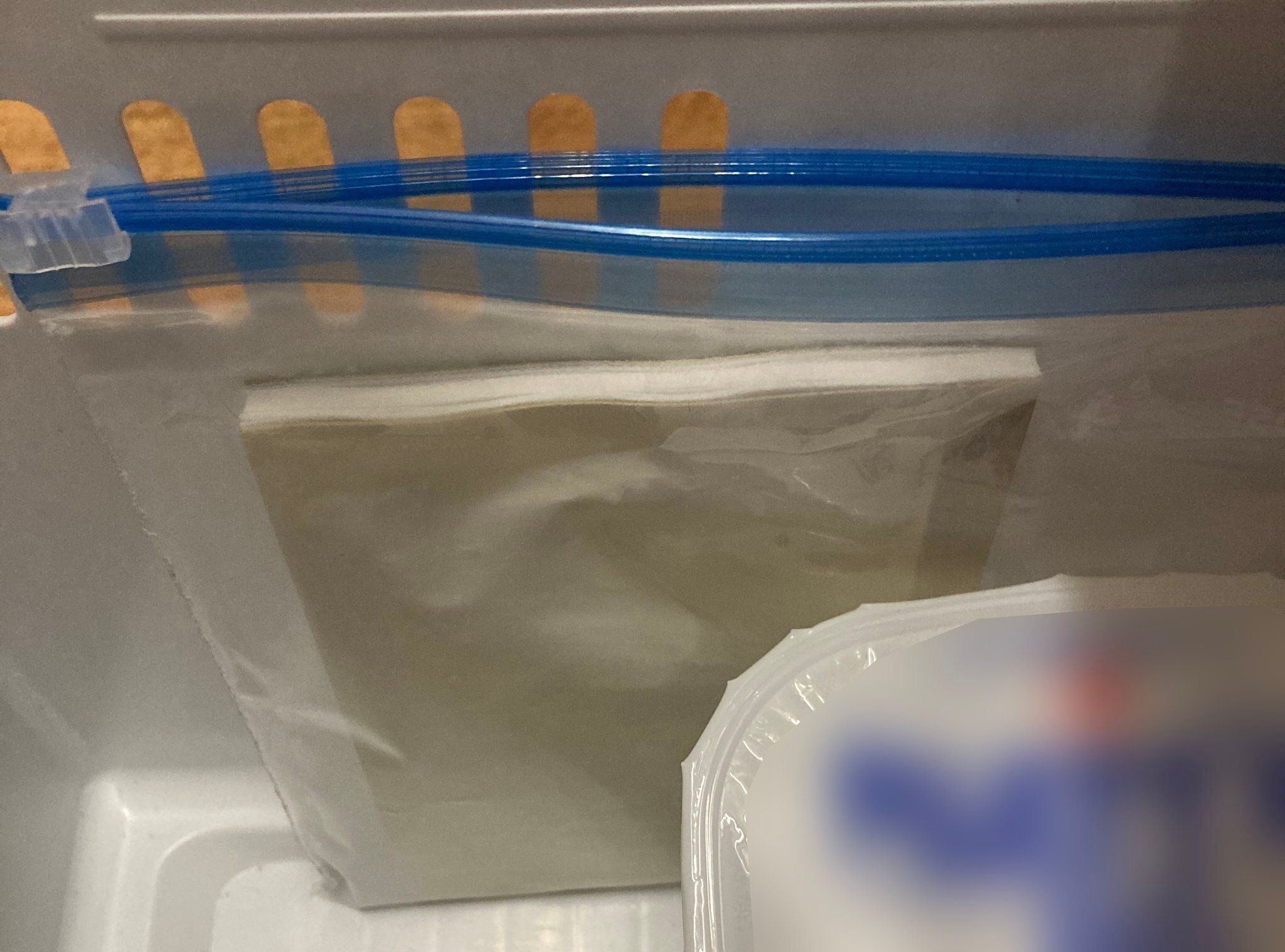 2.保存袋にノートを入れて、口の部分をあけたまま、冷凍庫へ24時間入れる