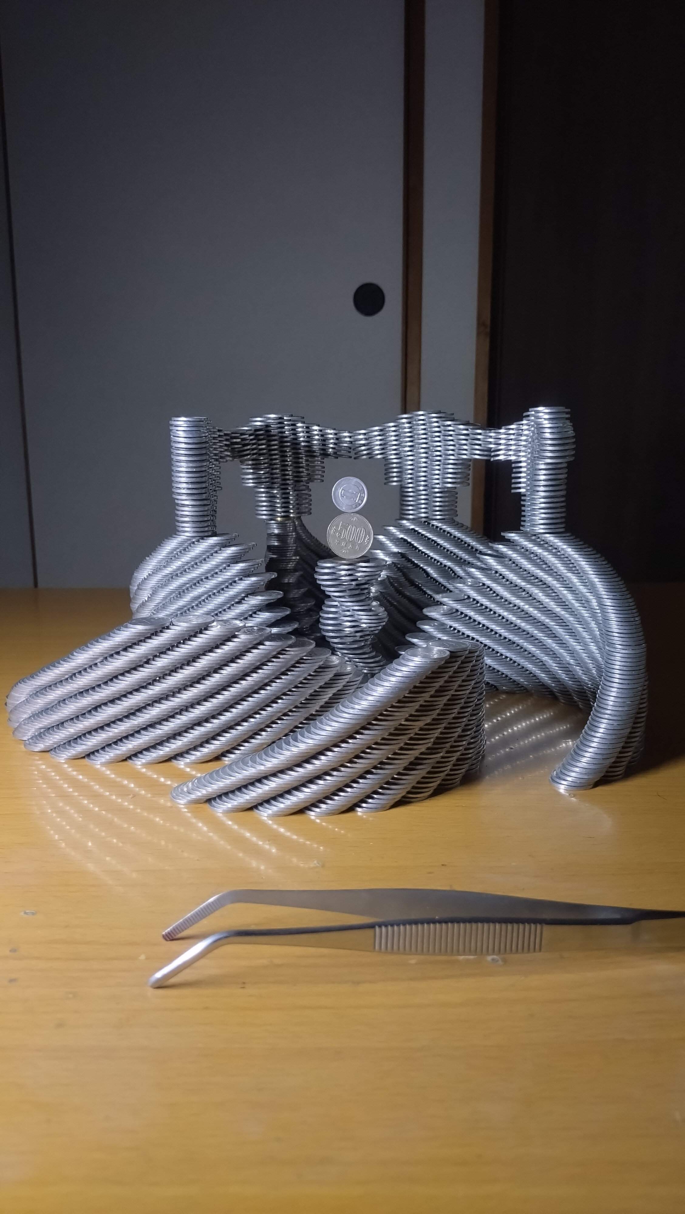 硬貨を使い立体的なオブジェを作ったという、た ぬさん。