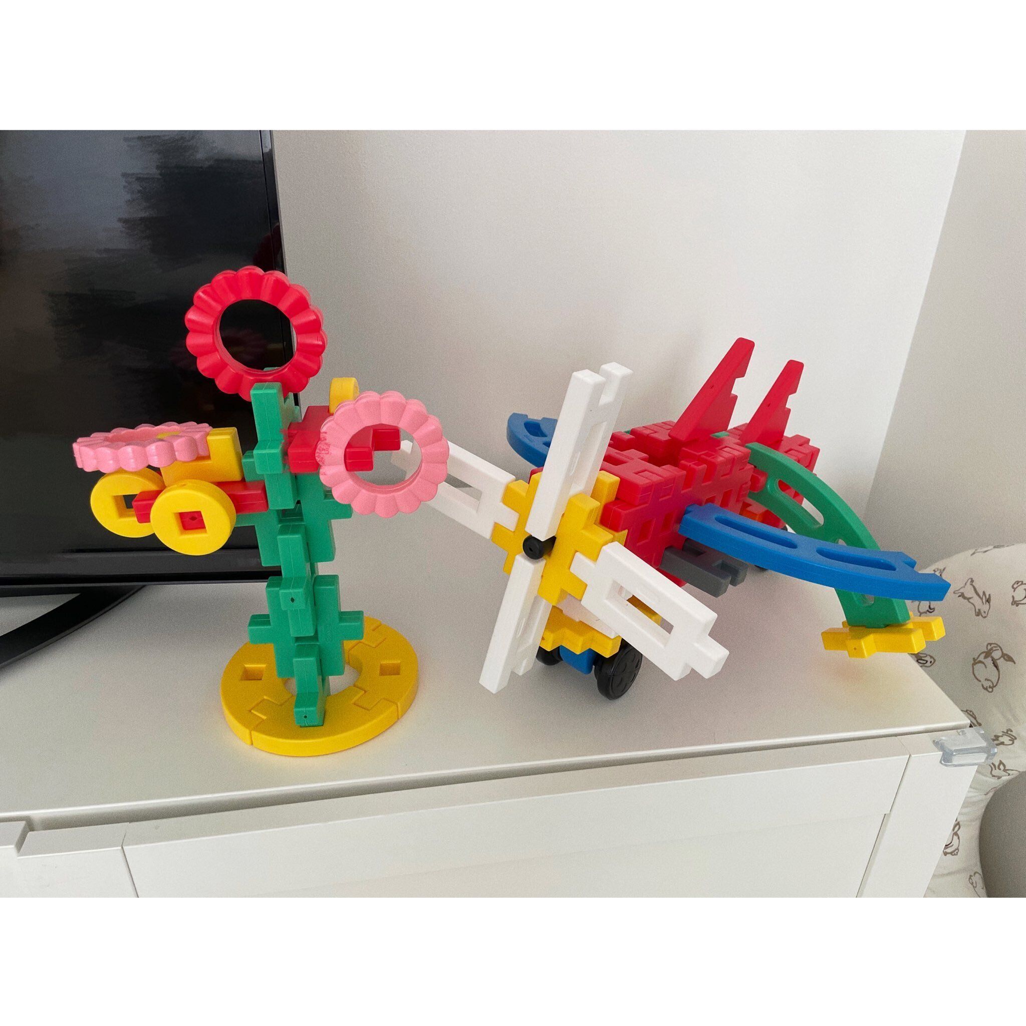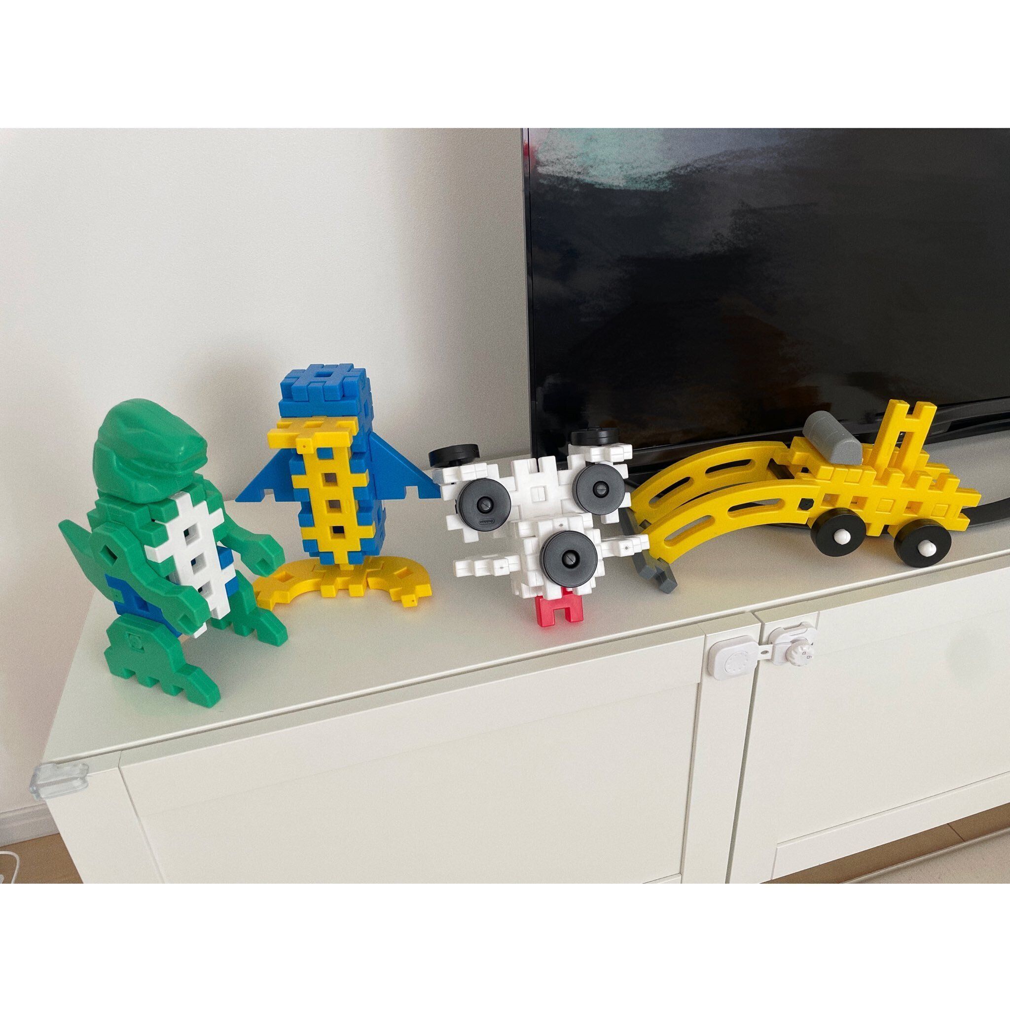 「5分もかかっていないくらいかな?ササッと作っていました。夫も子どもの頃にこのブロックでよく遊んでいたみたいです。懐かしいと言いながら息子と楽しんでいました」