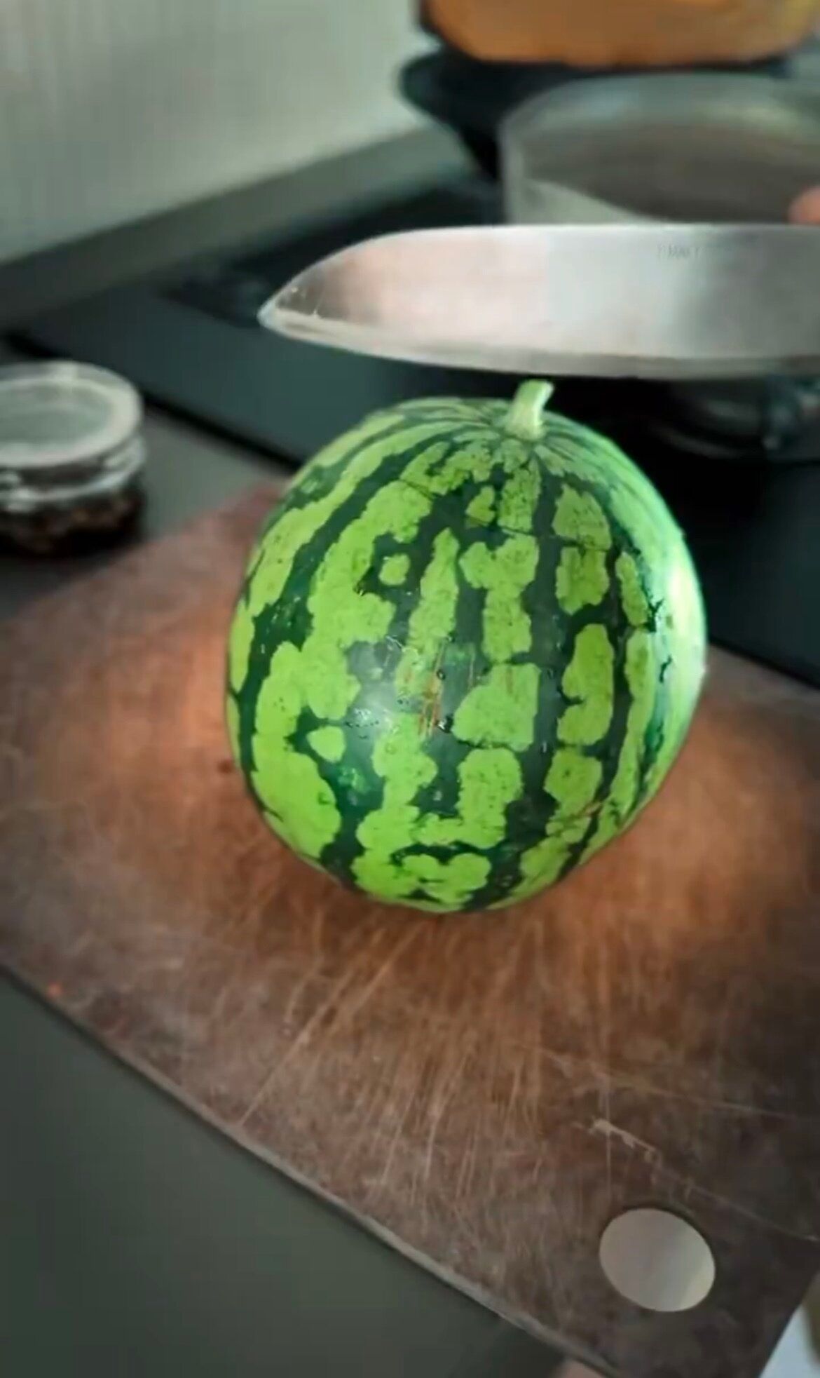 家庭菜園でできたスイカ、食べ頃かと思い割ってみると驚きの断面が?!「笑いました」の声と6.3万件のいいね