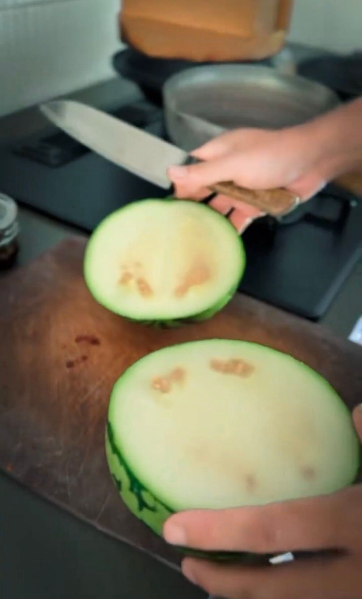今回ご紹介するのは、自宅でスイカを育てている、にうさん(@niu_girl_no8)の投稿。食べ頃かと思い収穫したスイカを夫婦でカットする様子が残されています。しかしカットしてみると……?!衝撃の断面に6.3万件のいいねが集まりました。
