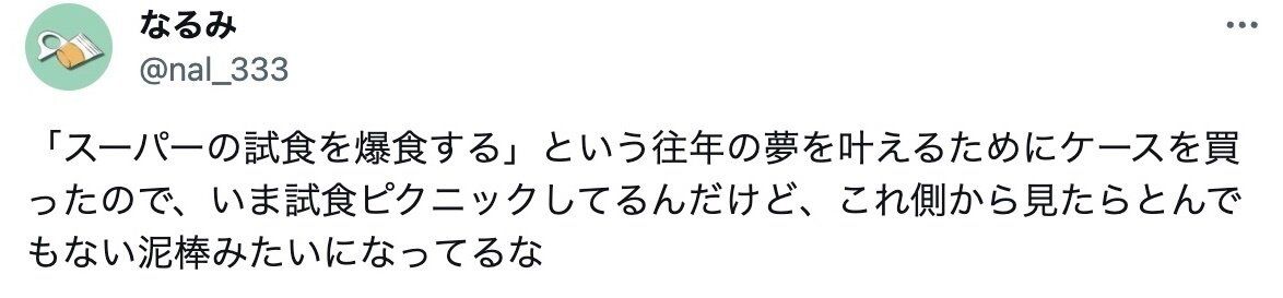 「共感してくださる方が多く、やっぱりみんな試食好きだよな〜とうれしくなりました。またいつかスーパーでみんなで試食したいですね」