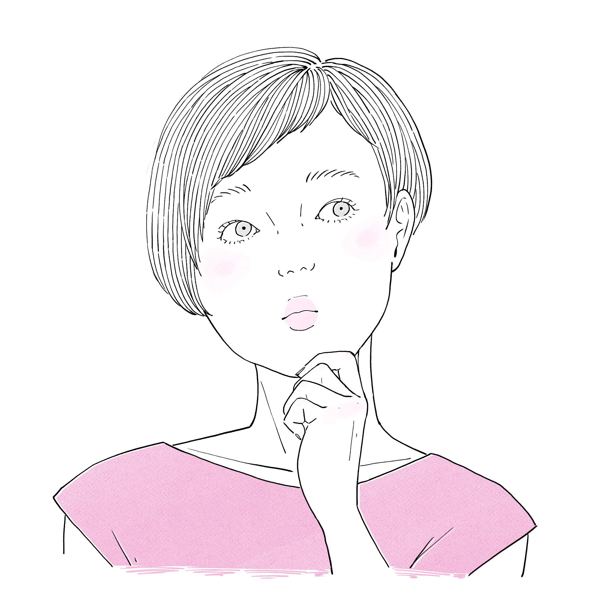 考え事をする時はあごに手をやると、神さまが力を貸してくれて、良いアイデアや考えを引き出すことができますよ。