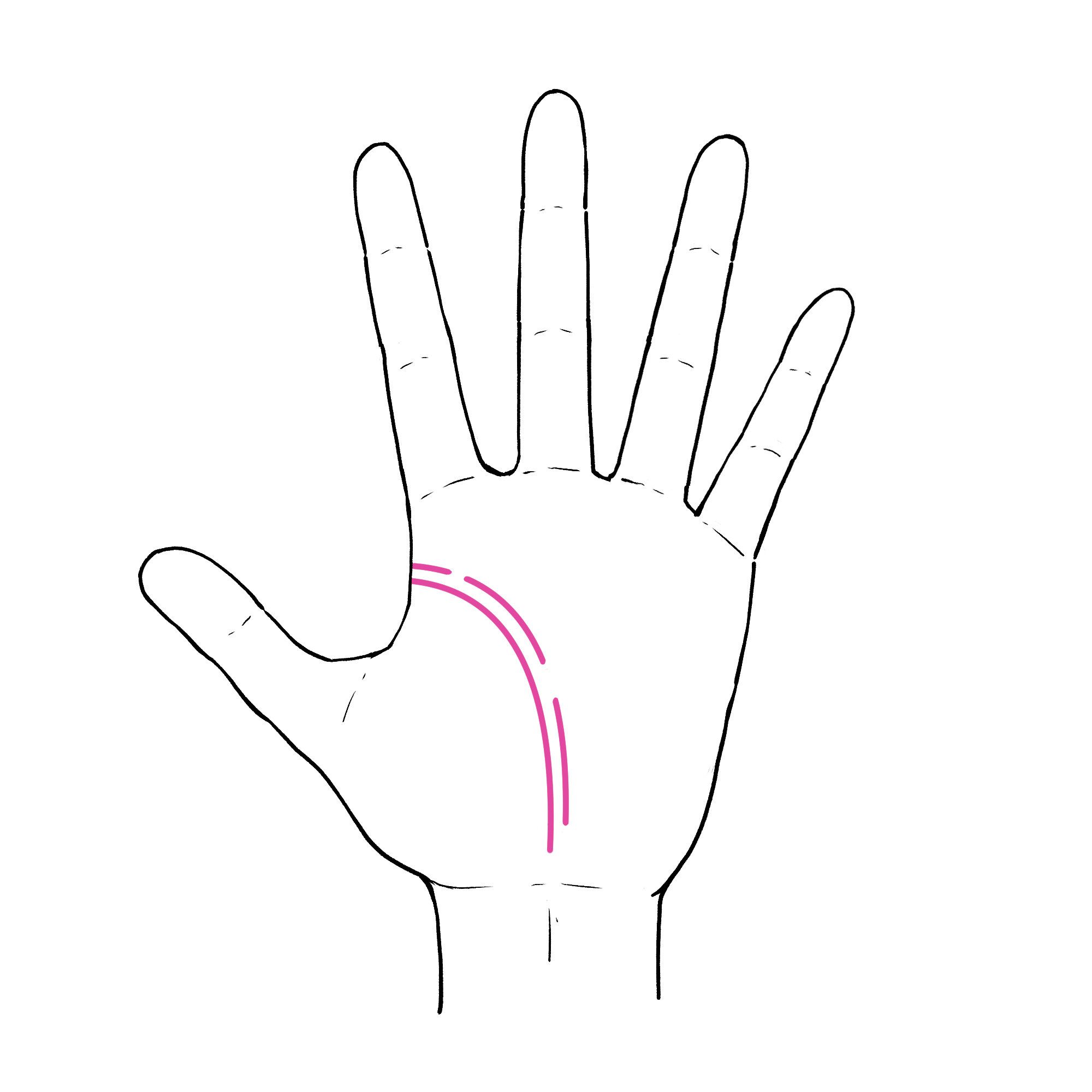 人差し指と中指のつけ根の間から、薬指と小指の間にかけて半円を描く金星帯が、途中切れながらでも複数本あったら、芸術的なものに興味があるタイプ。