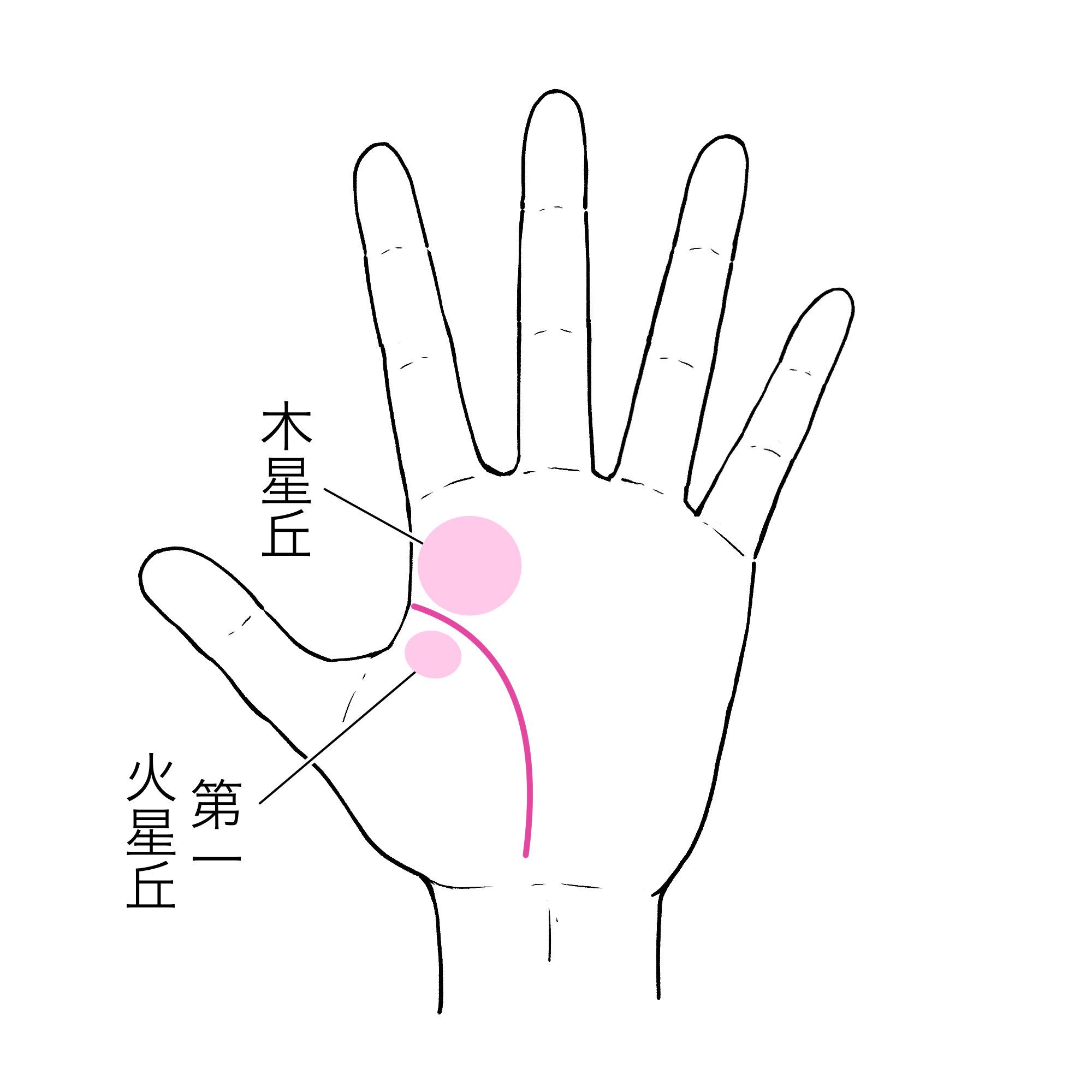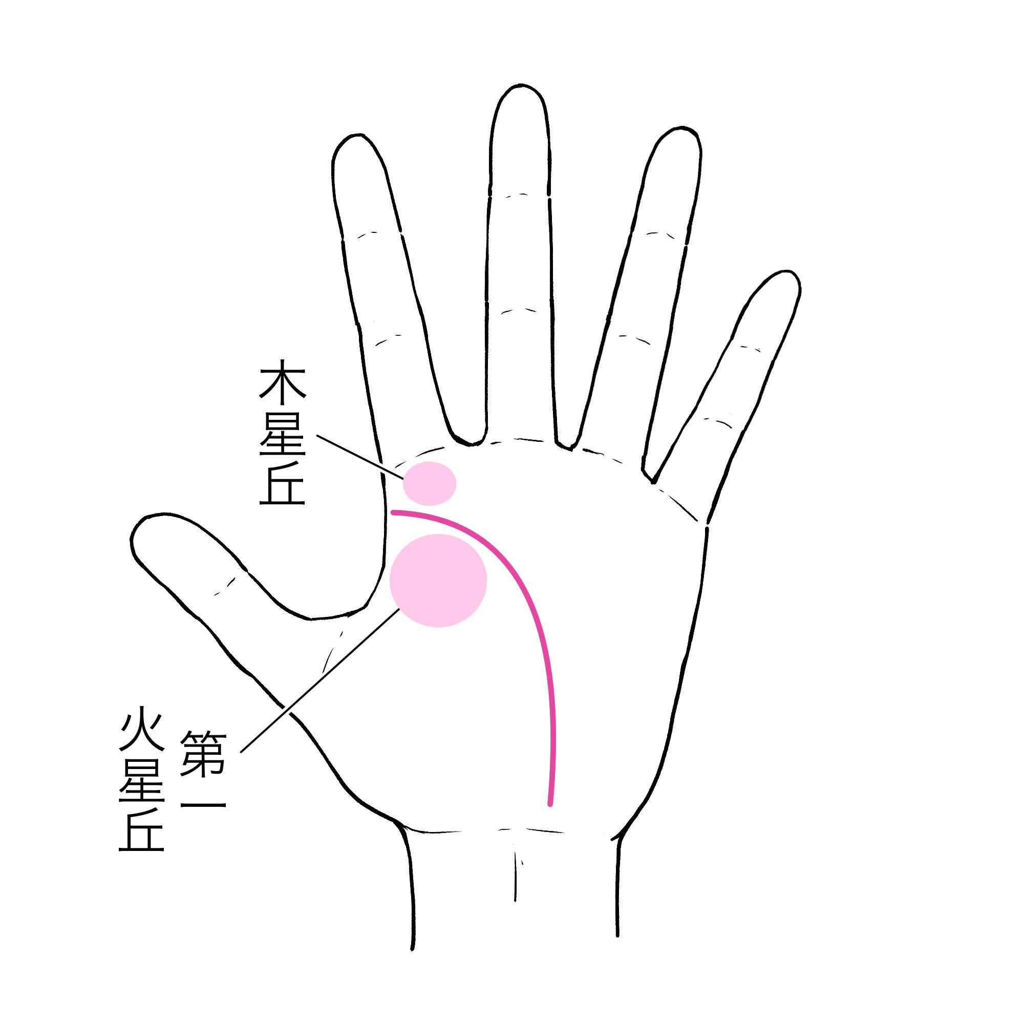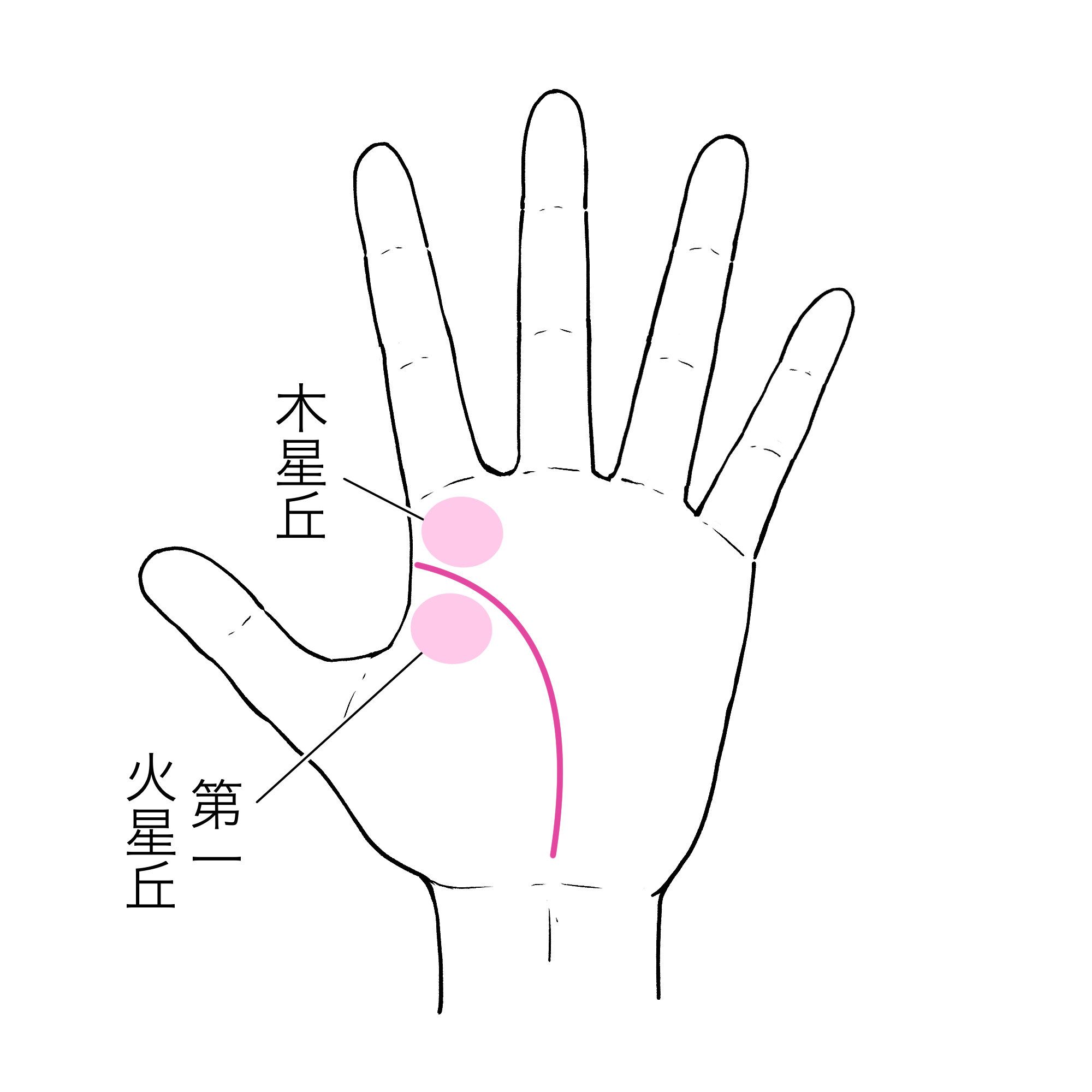 生命線の始まる位置が高く、第一火星丘の面積が広い人は、常に動き回っていないと落ち着かないタイプ。
