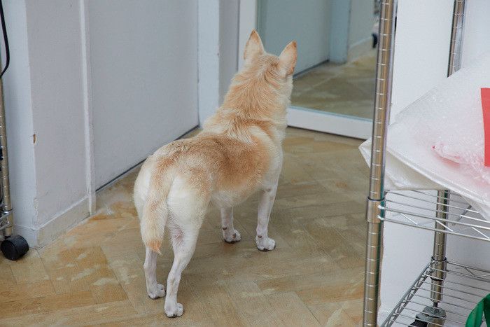 スタジオ内にある、大きな鏡に映る自分の姿を、いつまでもじーーっと見つめ続けるキップルちゃん。しかも、鏡の前を通りかかるたびに何度も(!)、じーーーっ。「あなたは、だあれ?」と聞いてるみたいな、きょと~んとした顔が、かわいすぎる!
