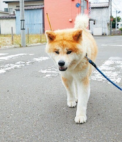 甲斐(かい)犬、紀州犬、柴犬、四国犬、北海道犬と並び、1931年に天然記念物に指定された日本犬である秋田犬。三角でピンと立った耳、太くて長い足と巻き尻尾が特徴です。生後3カ月で10kgを超え、成犬の雄で30~40kg、雌で25~35kgくらいに。秋田県大館の地でマタギ犬として熊猟に伴った犬が祖先で、元は大館犬と呼ばれていました。毛色は赤毛、虎毛、白毛が代表的。性格は飼い主への忠誠心が強く、頭も良い。誰にでも懐く性格ではあるが、しっかりとしたしつけが必要だそう。そして暑さは苦手です。渋谷駅前の銅像になった「忠犬ハチ公」は1923年に大館市で生まれた秋田犬です。