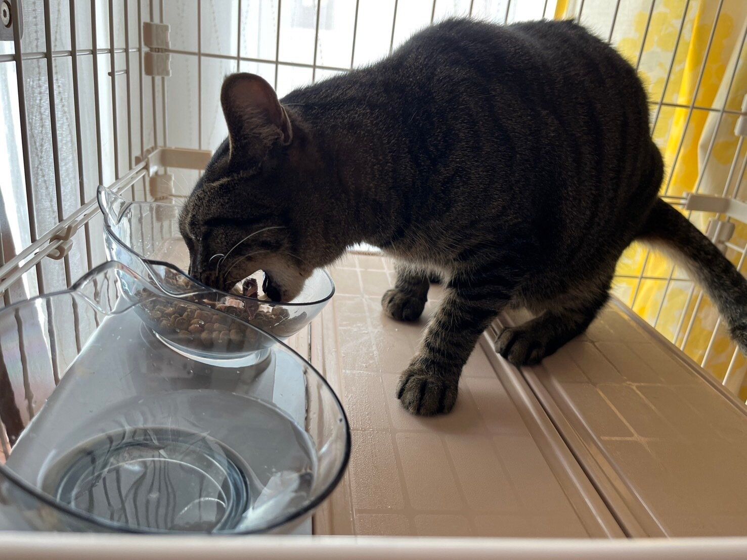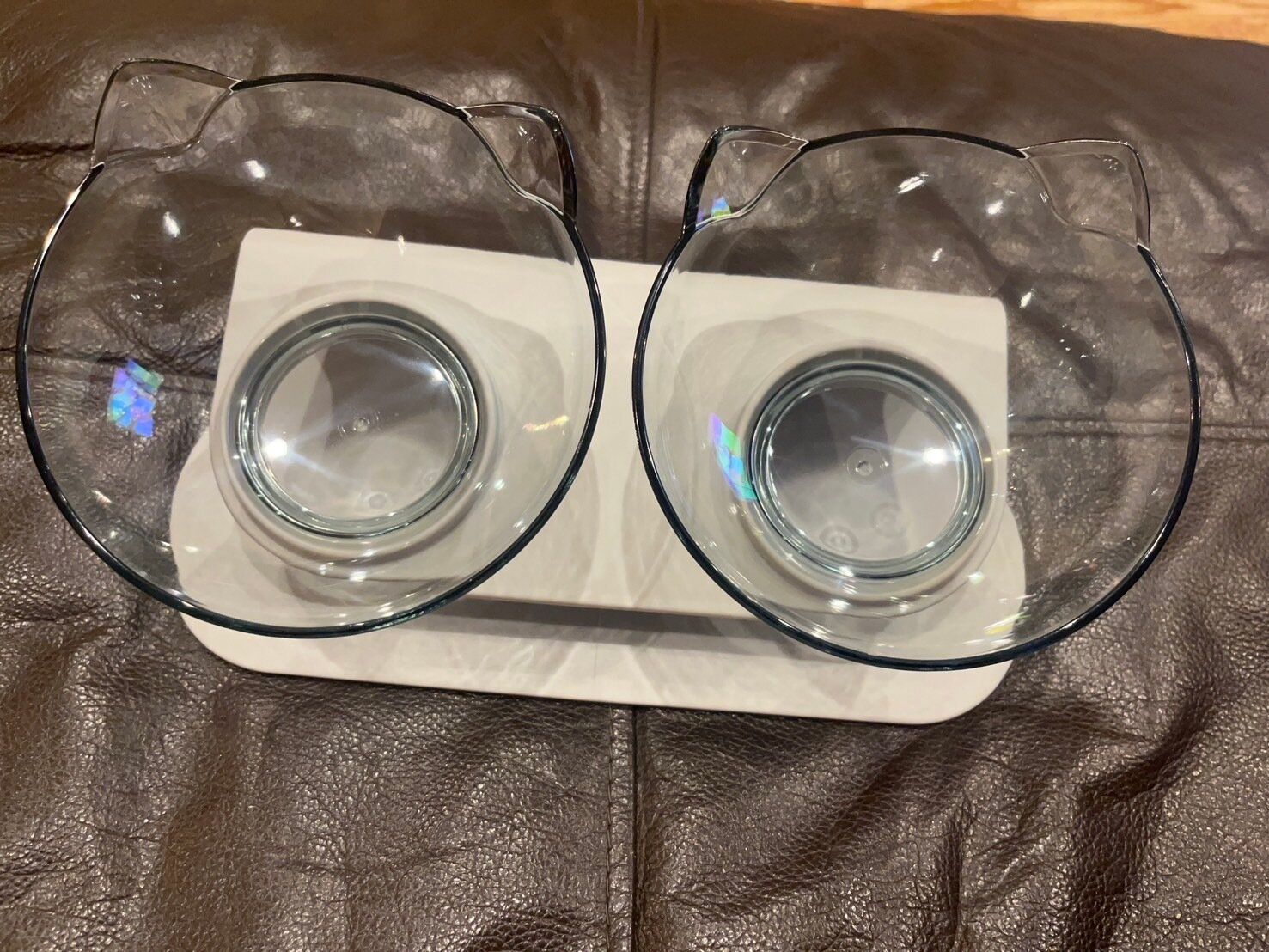 今まではごはん用と水用の食器を別々で使っていましたが、これなら2連になっているので見た目もスッキリしました。