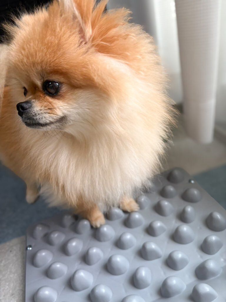 EBIKECHIさん(@ebikechi)が投稿したのは、愛犬ぽちゃんの可愛らしい行動。新しく届いた足ツボマットに興味を示し、乗ってみたようなのですが……。足が小さすぎて足ツボマットが効かない様子に、7.3万件のいいねが集まりました。