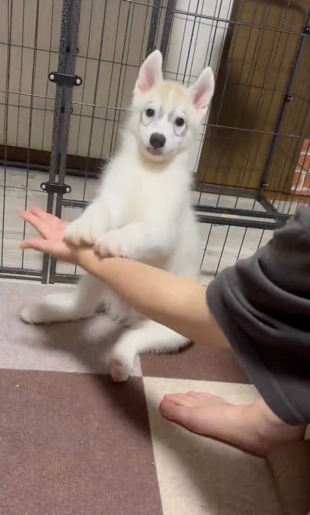 両手でお手をするのも、バランスをくずしてしまう姿も、とっても愛らしいですね!