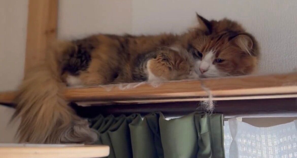 「先週同居猫が先にお風呂入れられたときはこんなに余裕だったのにね……可愛いね……」というコメントとともに投稿された動画がこちら。