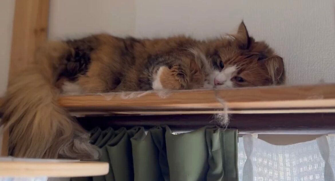 「しがみつき爪をたてて体に上り、私の手が届かない背中側に登ってしまったりしました。私はびしょびしょになり、毛だらけ傷だらけになりましたが、最後までがんばってくれました」